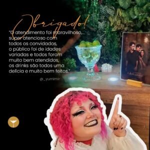 Serviço impecável, tivemos a sorte de contrata-los para a festa de 19 anos da minha filha e foi tudo perfeito, serviço de primeira e a Barwoman muito simpática e prestativa, fazendo drinks deliciosos! Vamos ter mais festas com certeza no futuro!!!