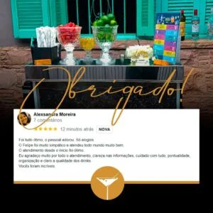 Todos os convidados elogiaram o atendimento dos bartenders, as bebidas, a apresentação, educação e simpatia desse pessoal!