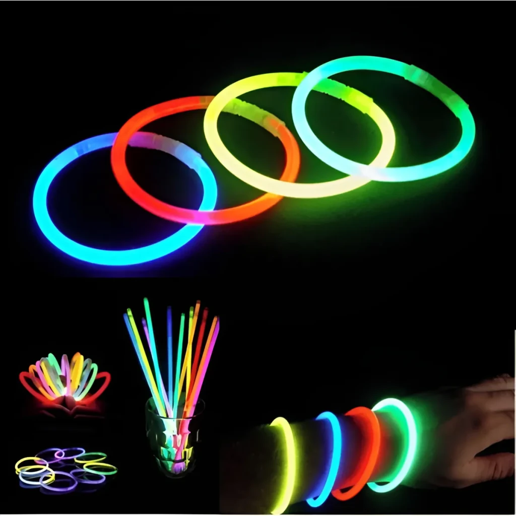 Transforme suas festas com as pulseiras neon! Com 100 unidades, você garante uma iluminação vibrante e divertida.