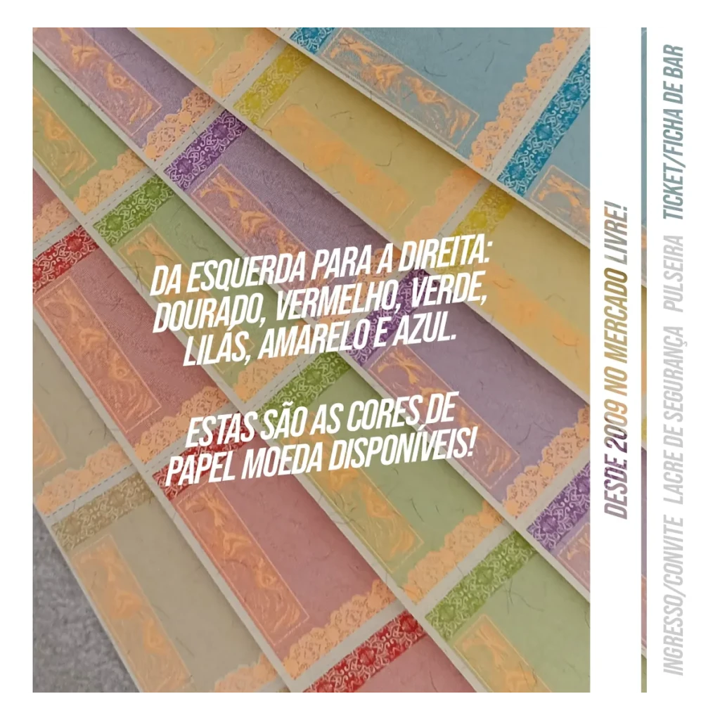 Aproveite a promoção: compre mais e ganhe unidades extras! Cada ticket é feito em papel moeda, medindo 4,2 cm x 3,8 cm, perfeito para manuseio e distribuição.