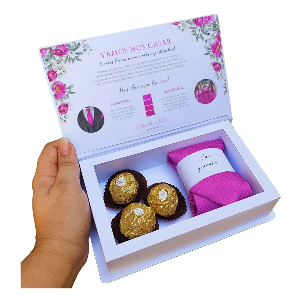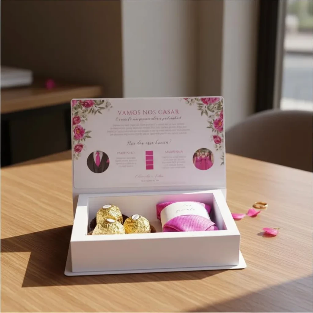 Surpreenda seus padrinhos com essas caixas de convite 100% personalizadas, ideais para casamentos e diversas outras ocasiões.