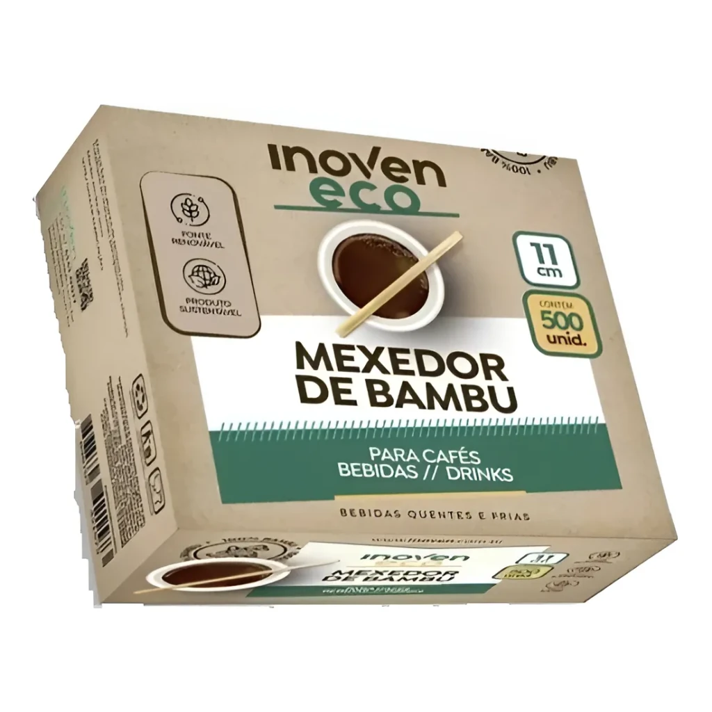 Escolha sustentável com nossos mexedores de bambu de 11cm. Cada kit contém 500 unidades, perfeitos para cafés, chás e drinks. Design liso para fácil manuseio e elegância.