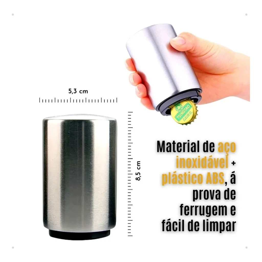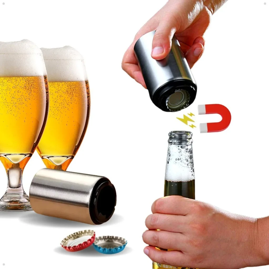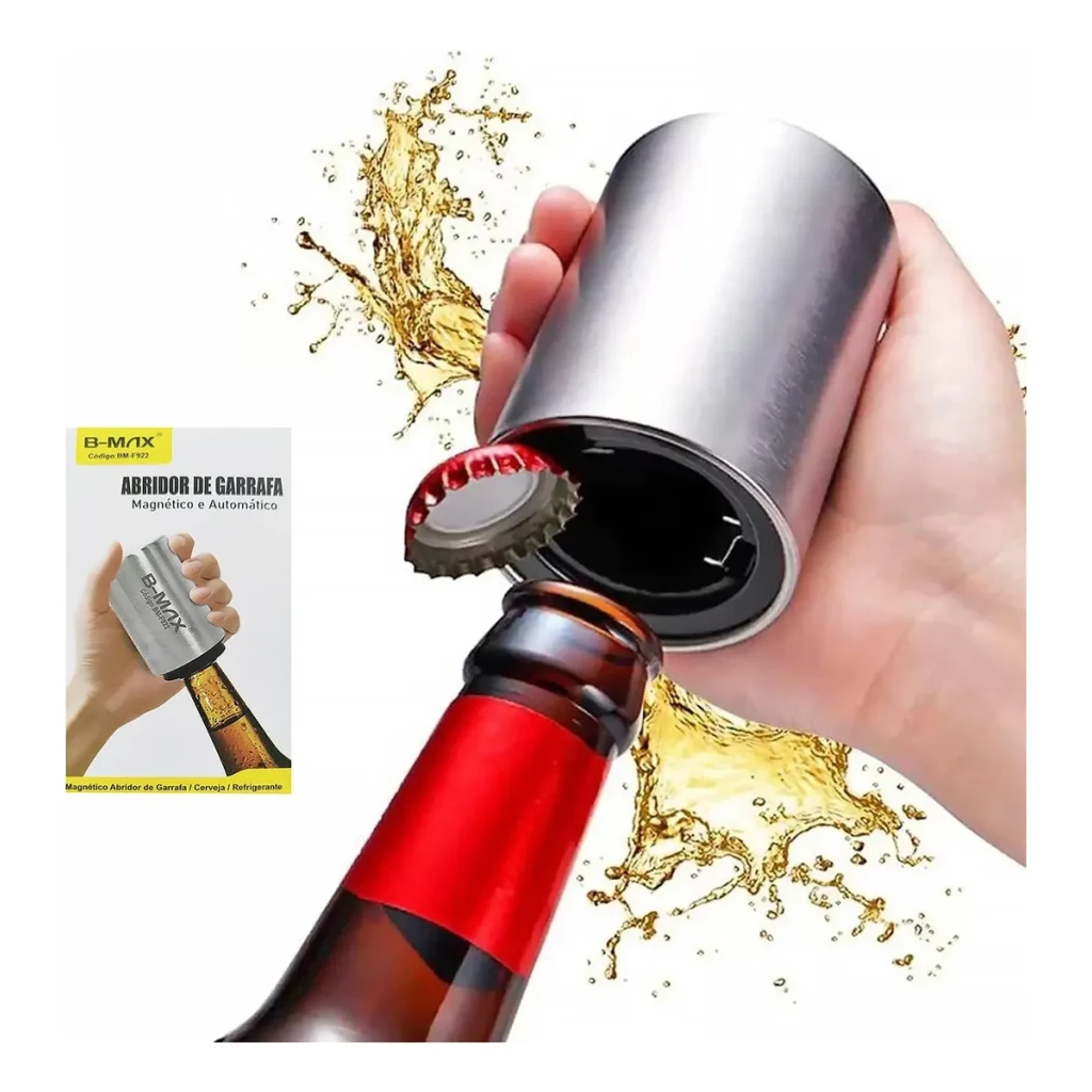 Descubra a praticidade do Abridor Automático Magnético B-Max. Com design moderno e funcional, ele abre suas garrafas com um simples clique.