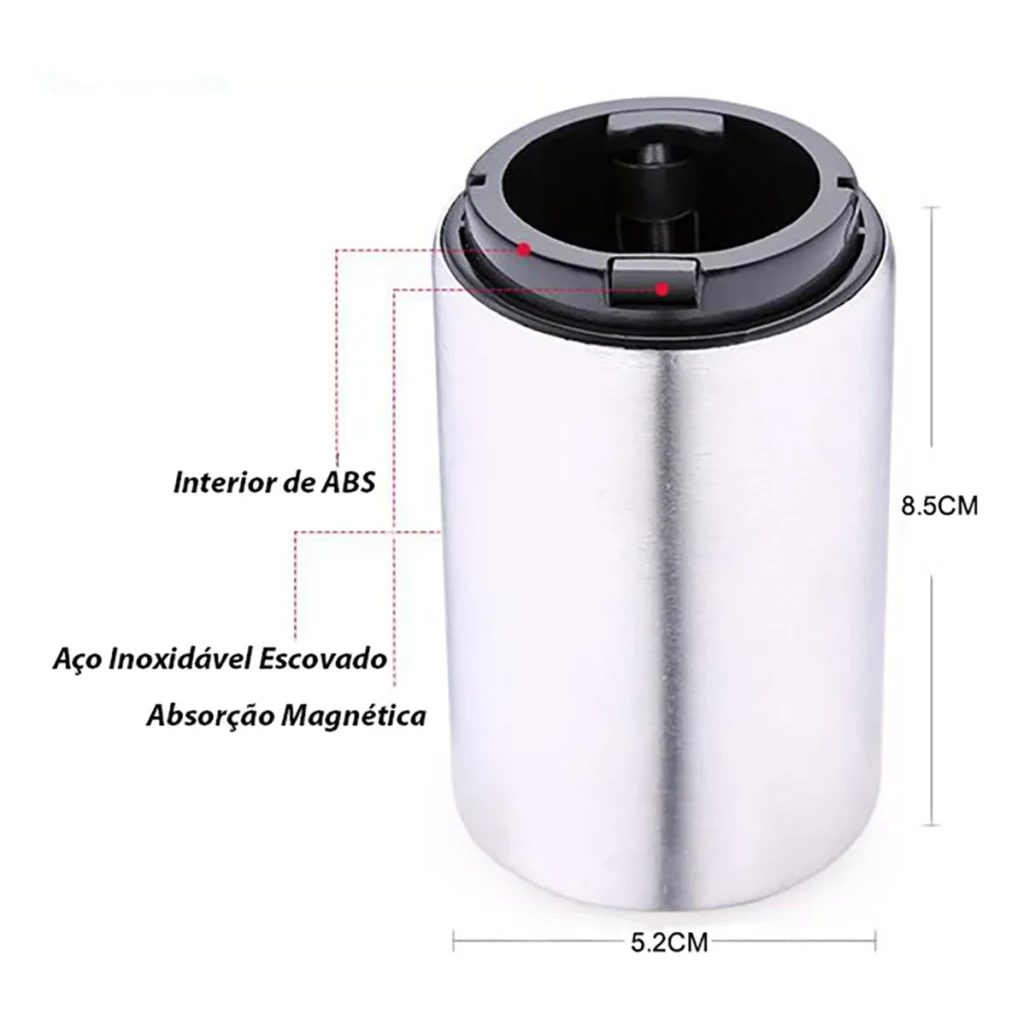 - Magnético: Fixa-se à tampa e abre com um clique.