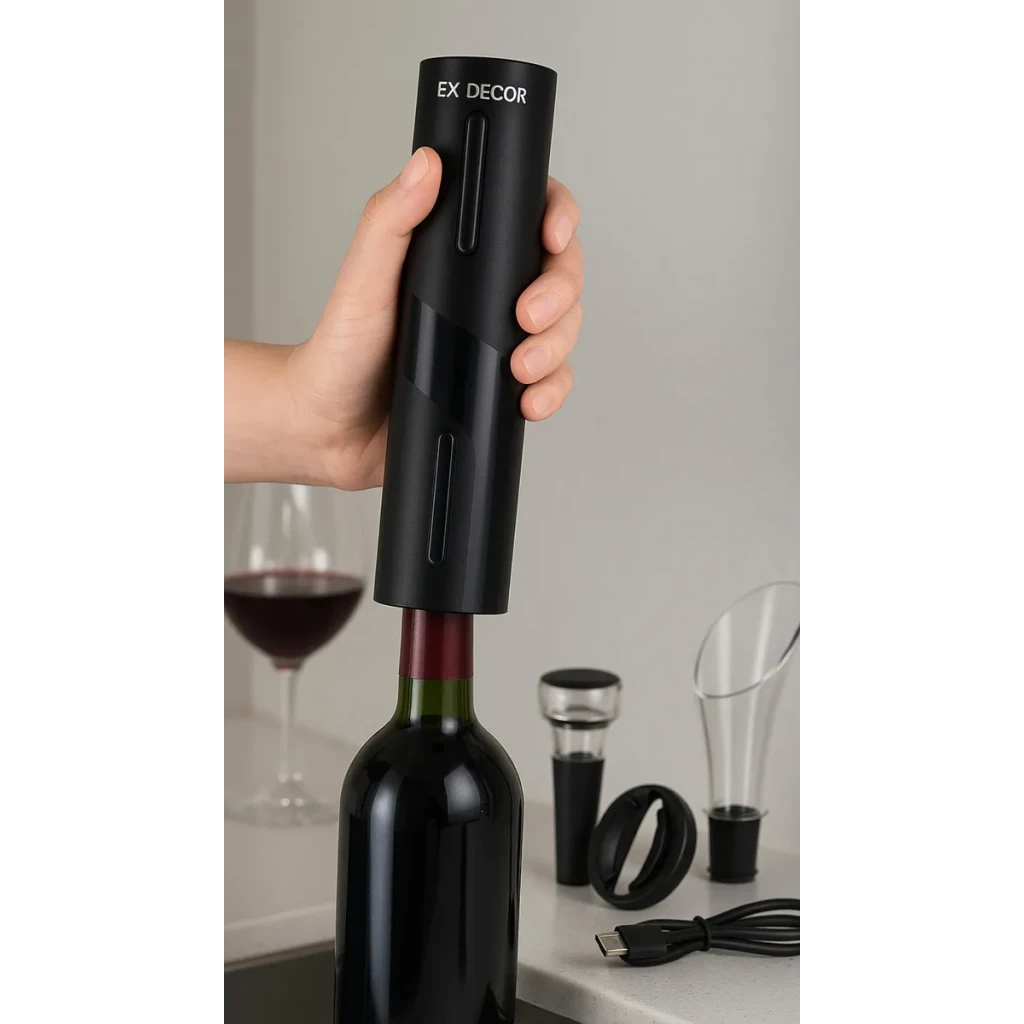 Apresentamos o Abridor de Vinho Elétrico Automático Recarregável USB da marca EX Decor, concebido para transformar a experiência de abrir vinhos em algo simples e sofisticado.