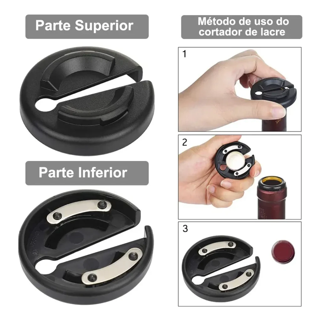 Inclui cortador de cápsula, derramador e tampa protetora, tornando-o perfeito para jantares e eventos sofisticados.