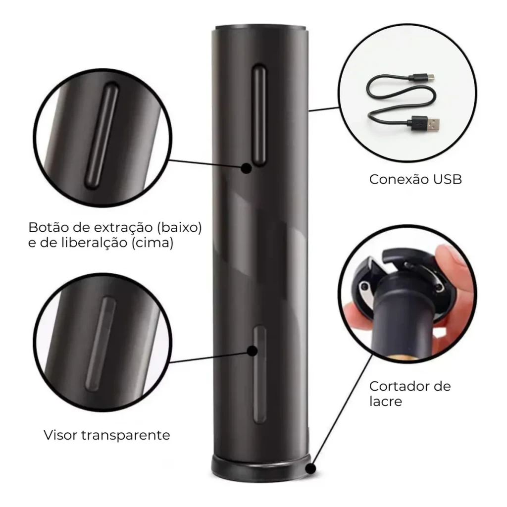 Abridor de Vinho Elétrico Recarregável USB Preto – GregoMax