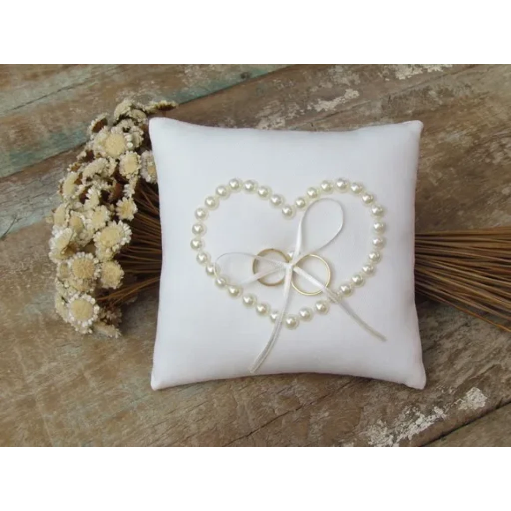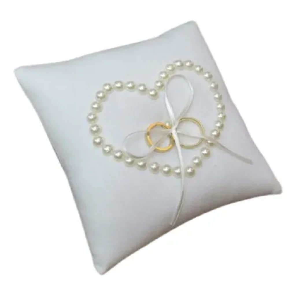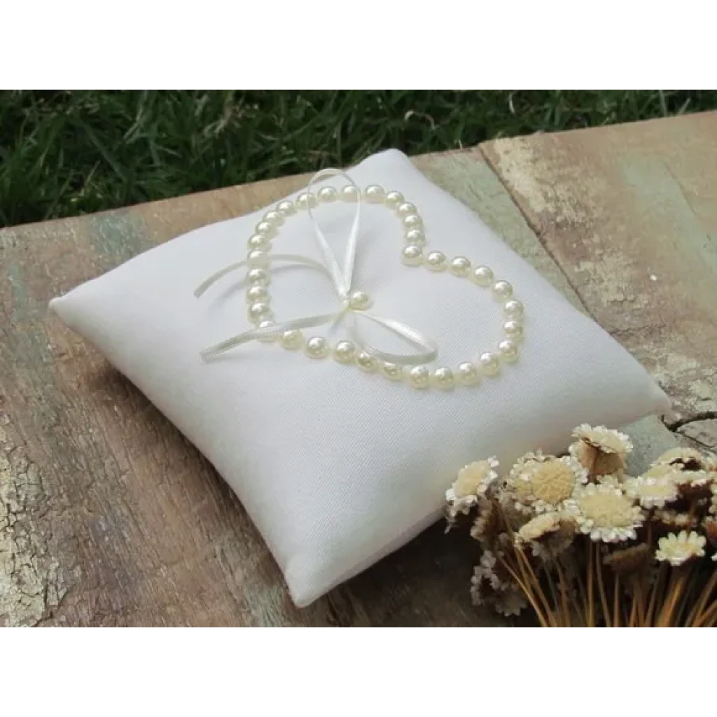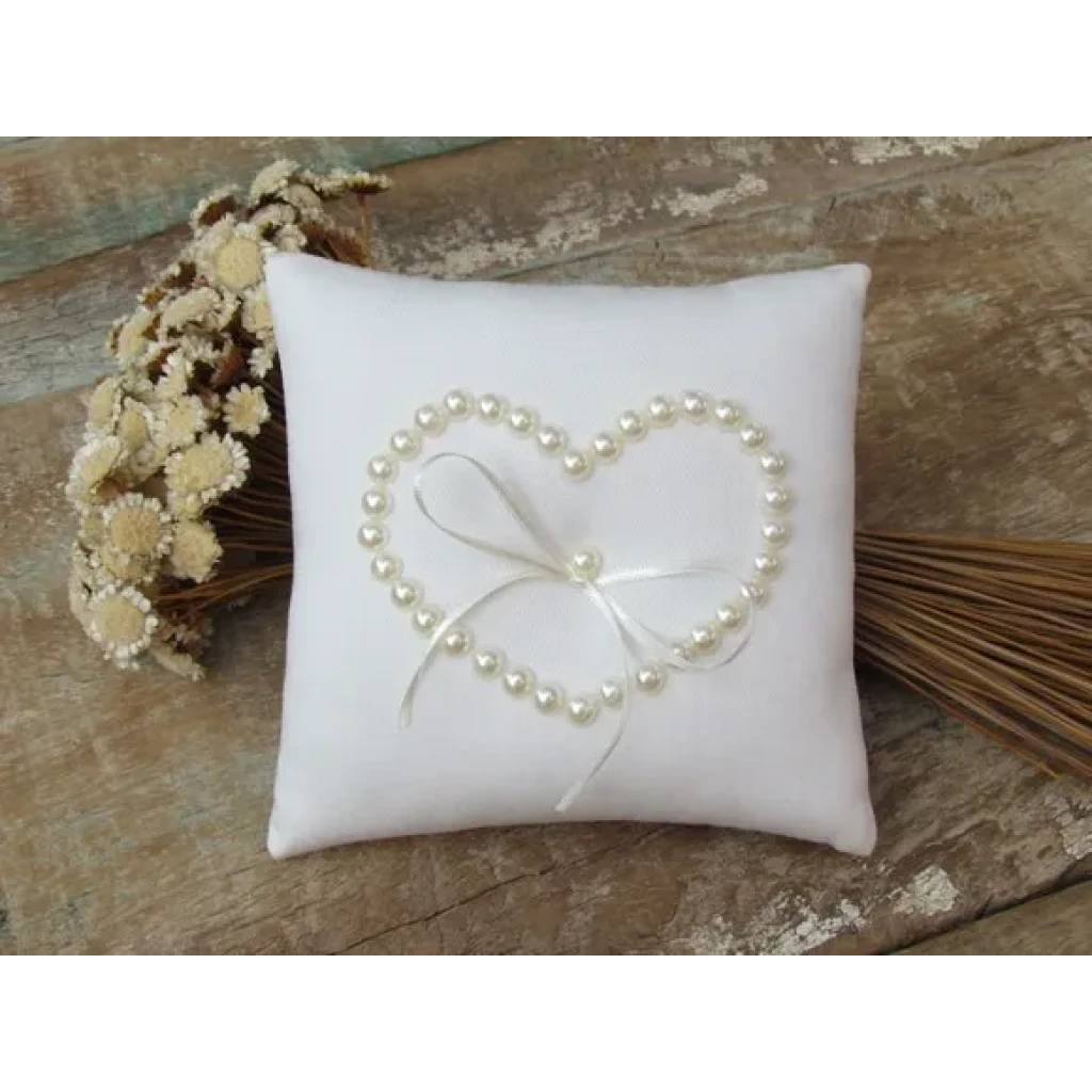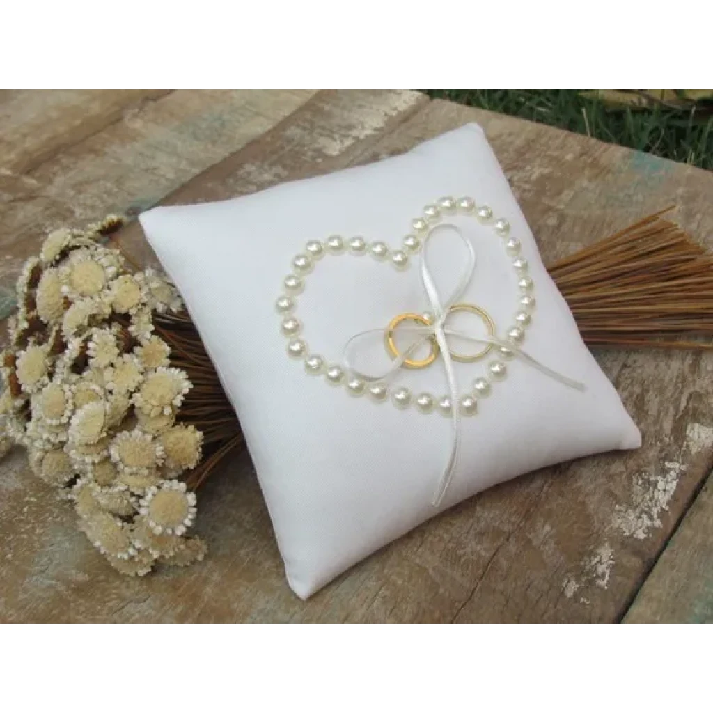 Almofada Porta Aliança Branca com Pérola para Noivas