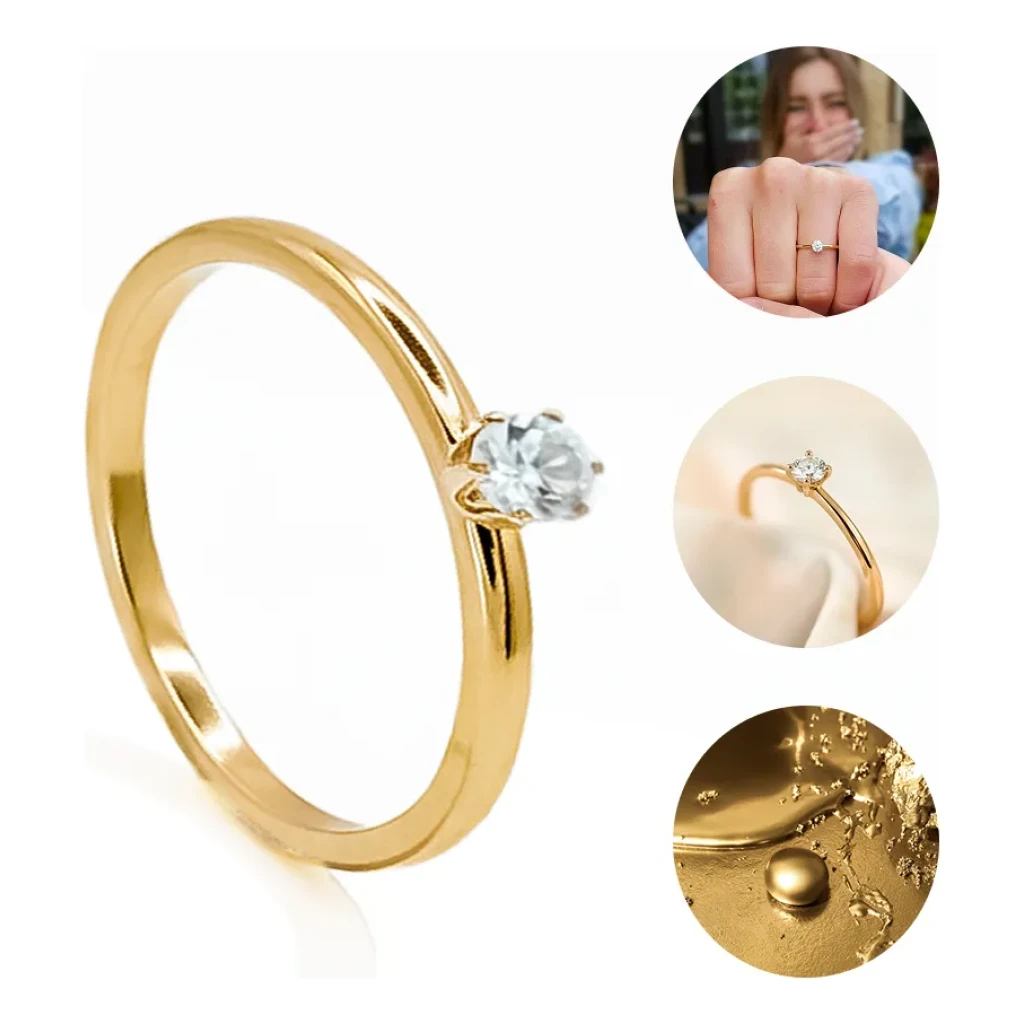 Anel Solitário em Tungstênio com Zirconia Brilhante e Banho de Ouro 18k