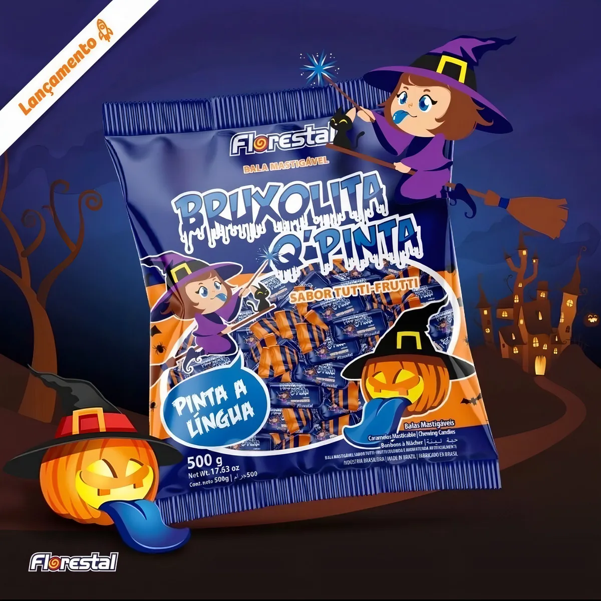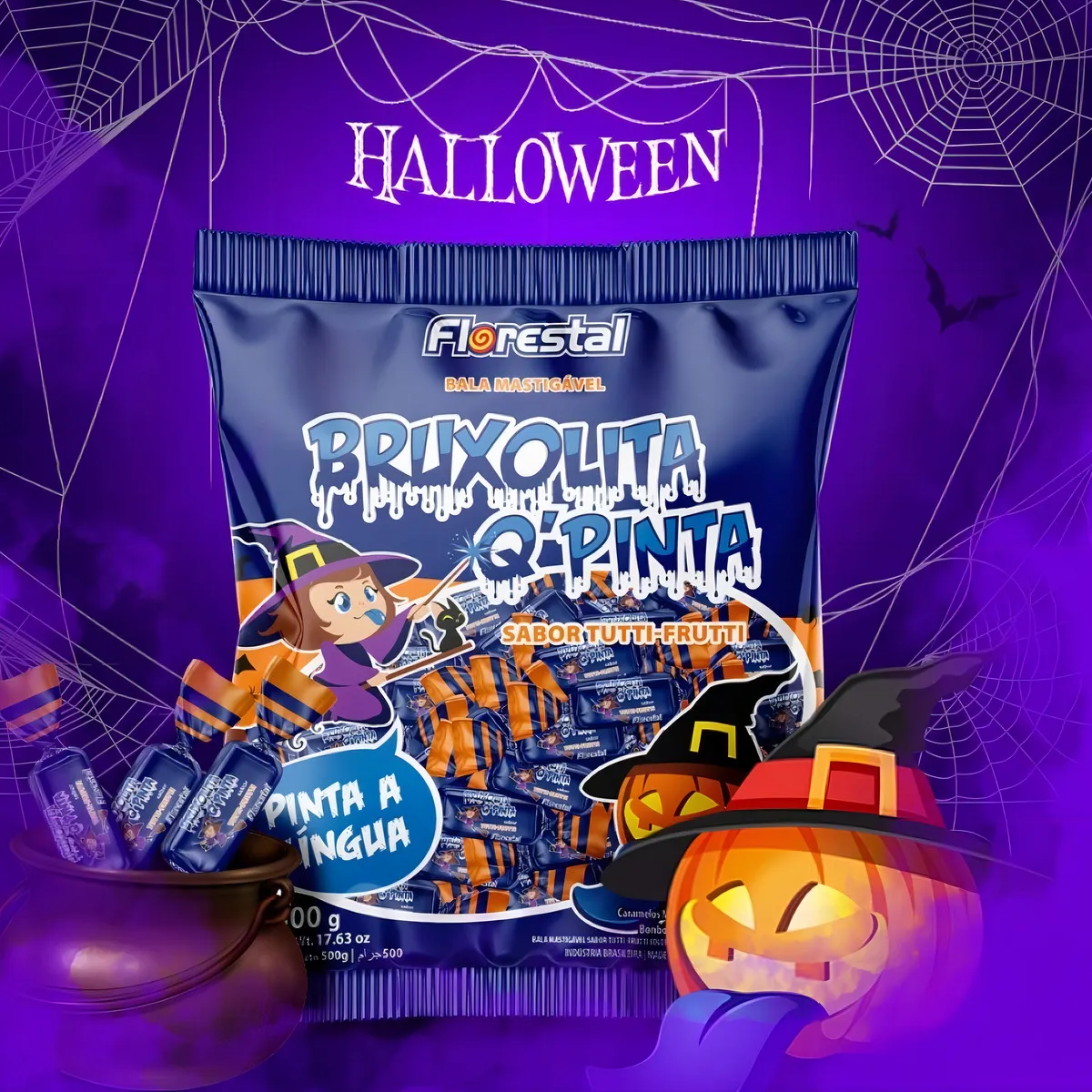 Deixe sua festa no clima de Dia das Bruxas com a bala halloween mastigável sabor tutti frutti — divertida, colorida e perfeita para “doçuras e travessuras”. O pacote de 500 g entrega volume ideal para montar lembrancinhas, abastecer a mesa de doces e receber a vizinhança com porções individuais. O efeito que pinta a língua garante risadas, fotos e stories que fazem a alegria da criançada e dos adultos.