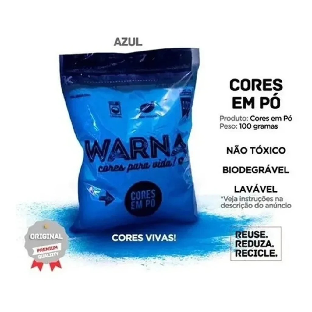 - Corantes Não Tóxicos: O pozinho Warna é feito de amido de milho, água e corantes alimentícios, seguros para todos.