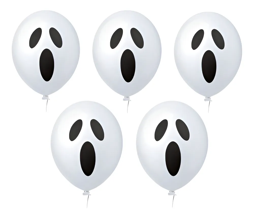 - Conteúdo: 25 balões N11 (11″) com estampa de fantasmas.