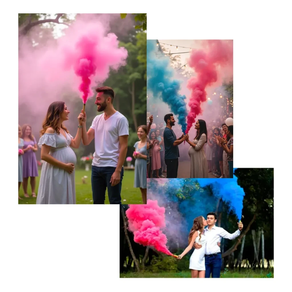As fumaças coloridas são perfeitas para o seu chá revelação e outras celebrações, proporcionando momentos mágicos e fotos deslumbrantes.