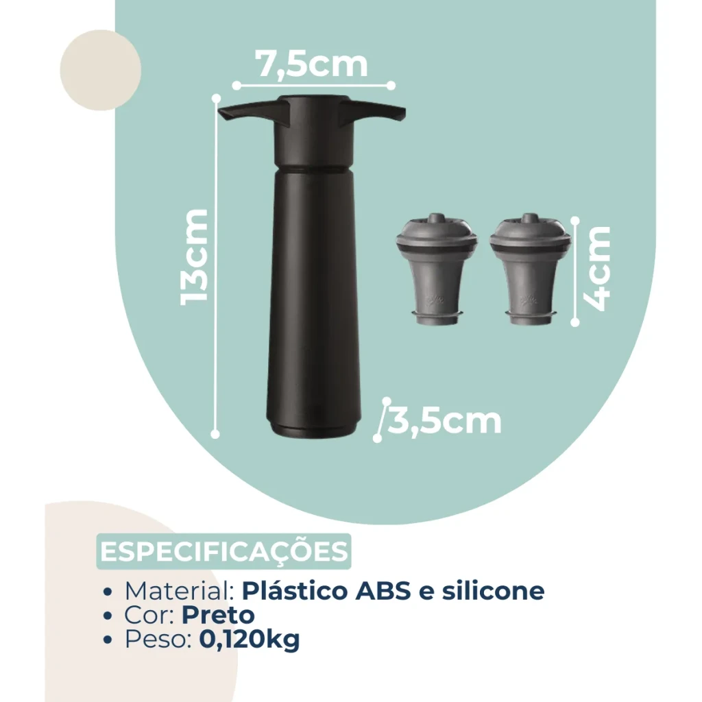Fabricada em polipropileno, a bomba é leve e prática, ideal para apreciadores que buscam qualidade e inovação em acessórios para vinho.