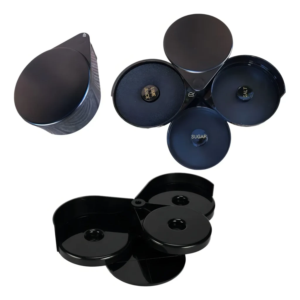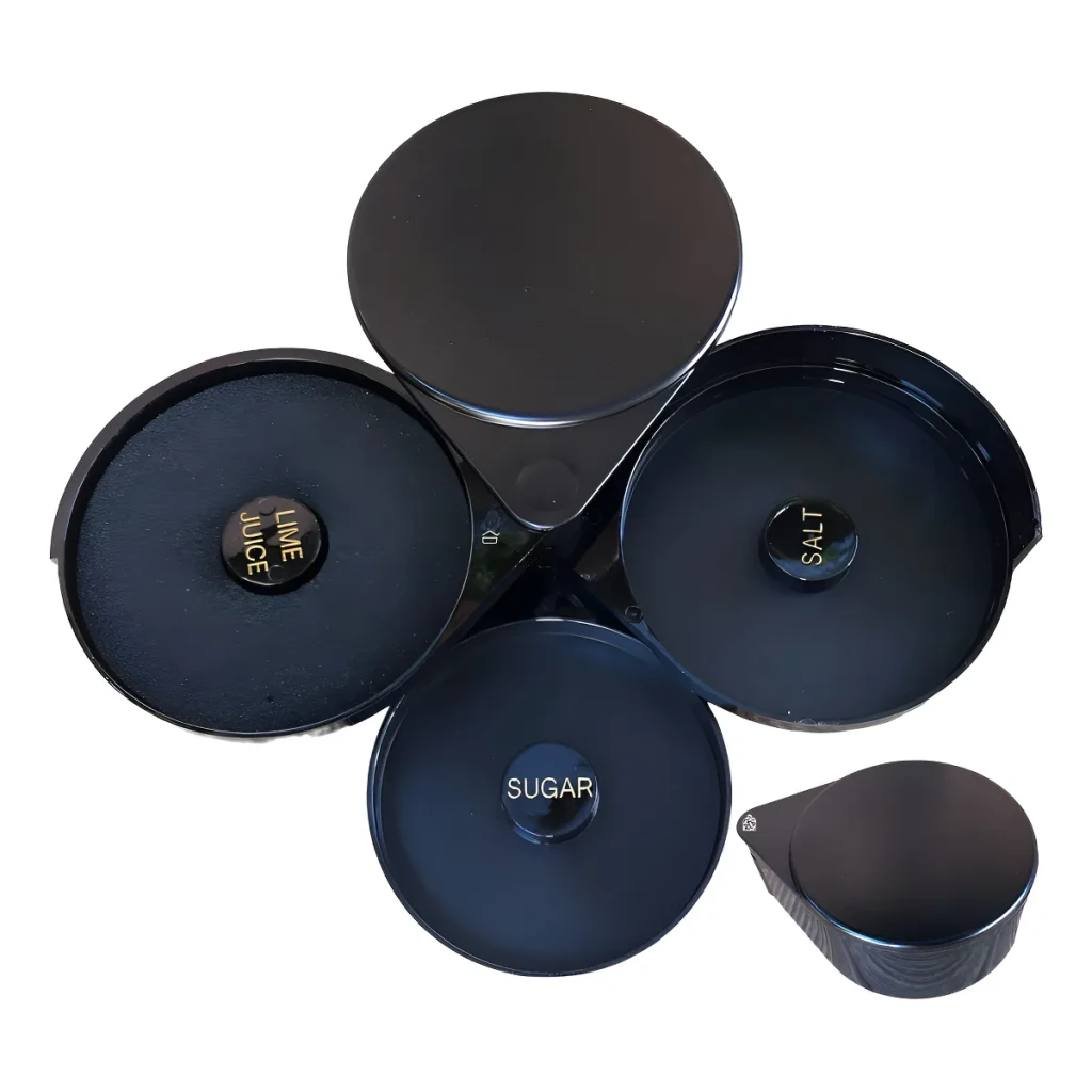 - Três Compartimentos: Ideal para sais, açúcares e condimentos.