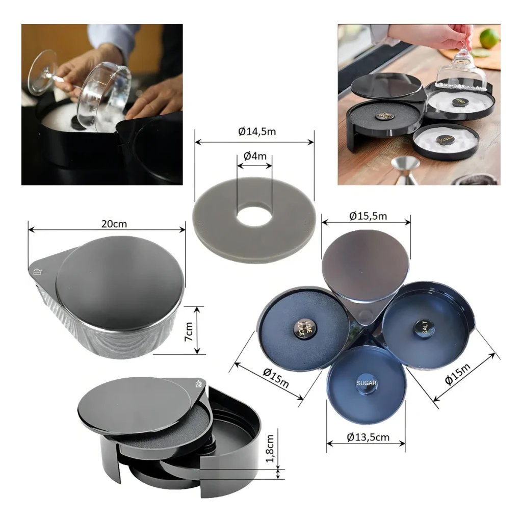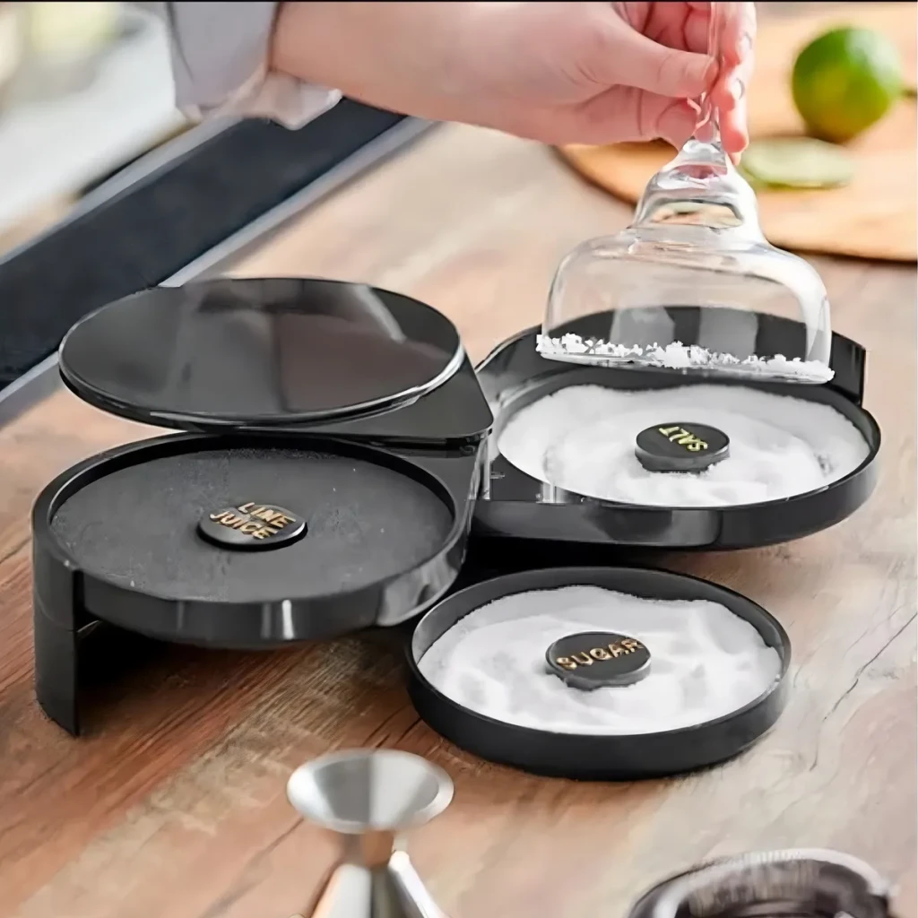 Prepare suas margaritas e coquetéis favoritos de maneira profissional com o Bordeador Triplo. Este acessório essencial permite adicionar toques especiais aos seus drinks, criando uma apresentação irresistível.