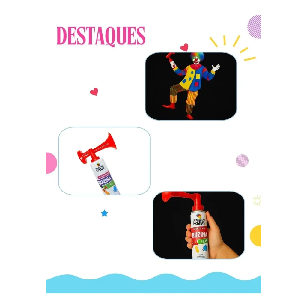 Transforme suas festas em momentos inesquecíveis com a nossa buzina de ar comprimido, que emite um som semelhante ao de uma buzina de caminhão.