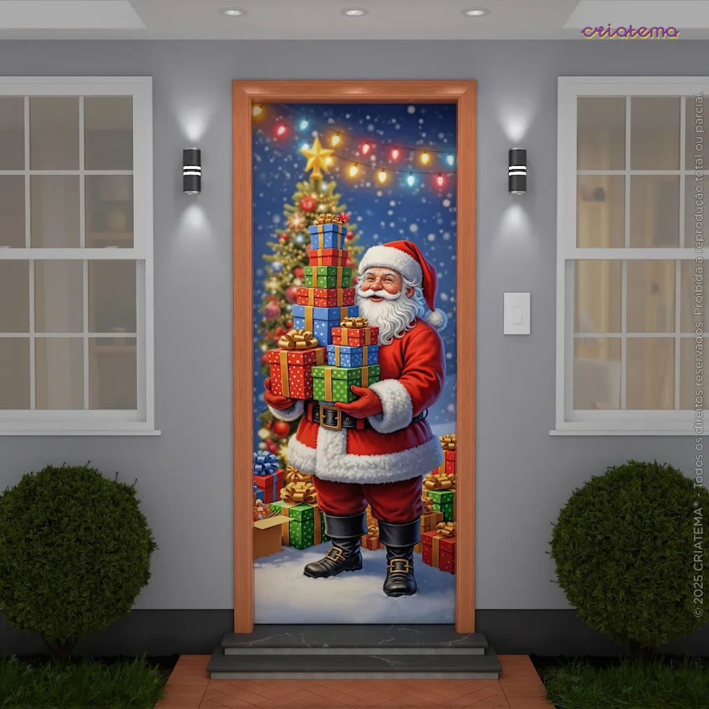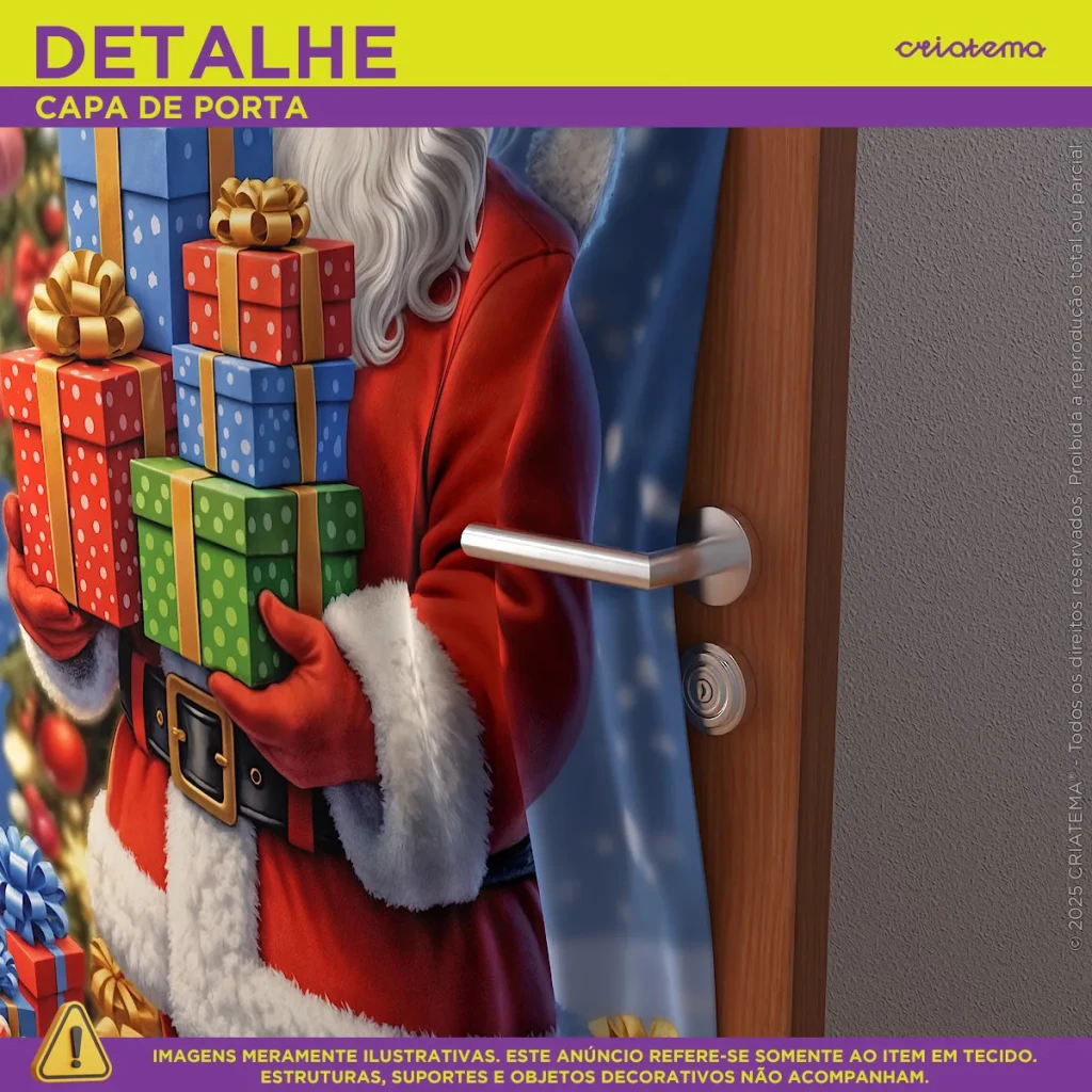 Transforme sua casa neste Natal com nossa Capa de Porta Decorativa em Tecido. Com design 3D e medidas de 0,85×2,10m, ela se encaixa perfeitamente em portas de até 0,80m de largura.
