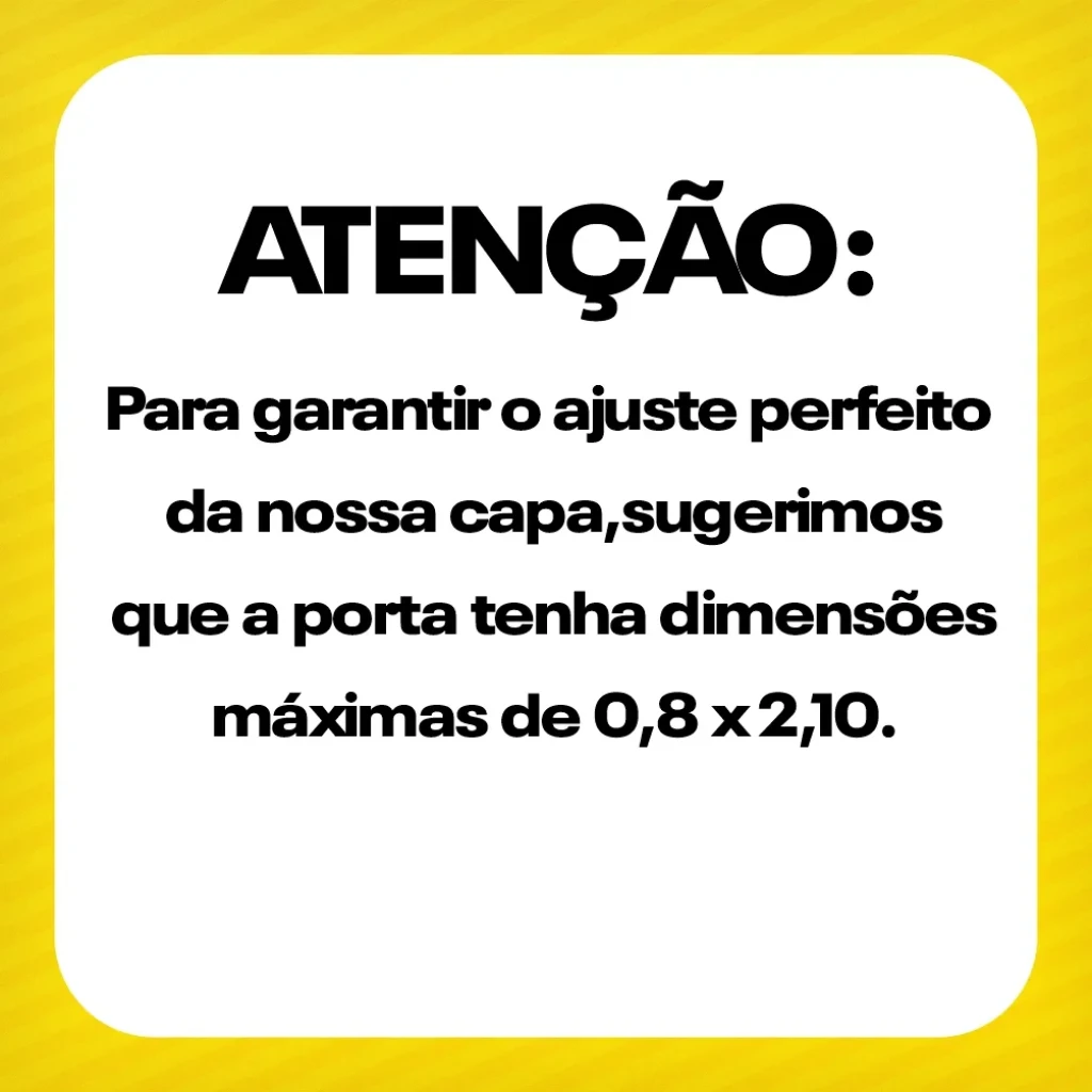Para garantir o ajuste perfeito, sugerimos que a porta tenha dimensões máximas de 0,80 x 2,10m.