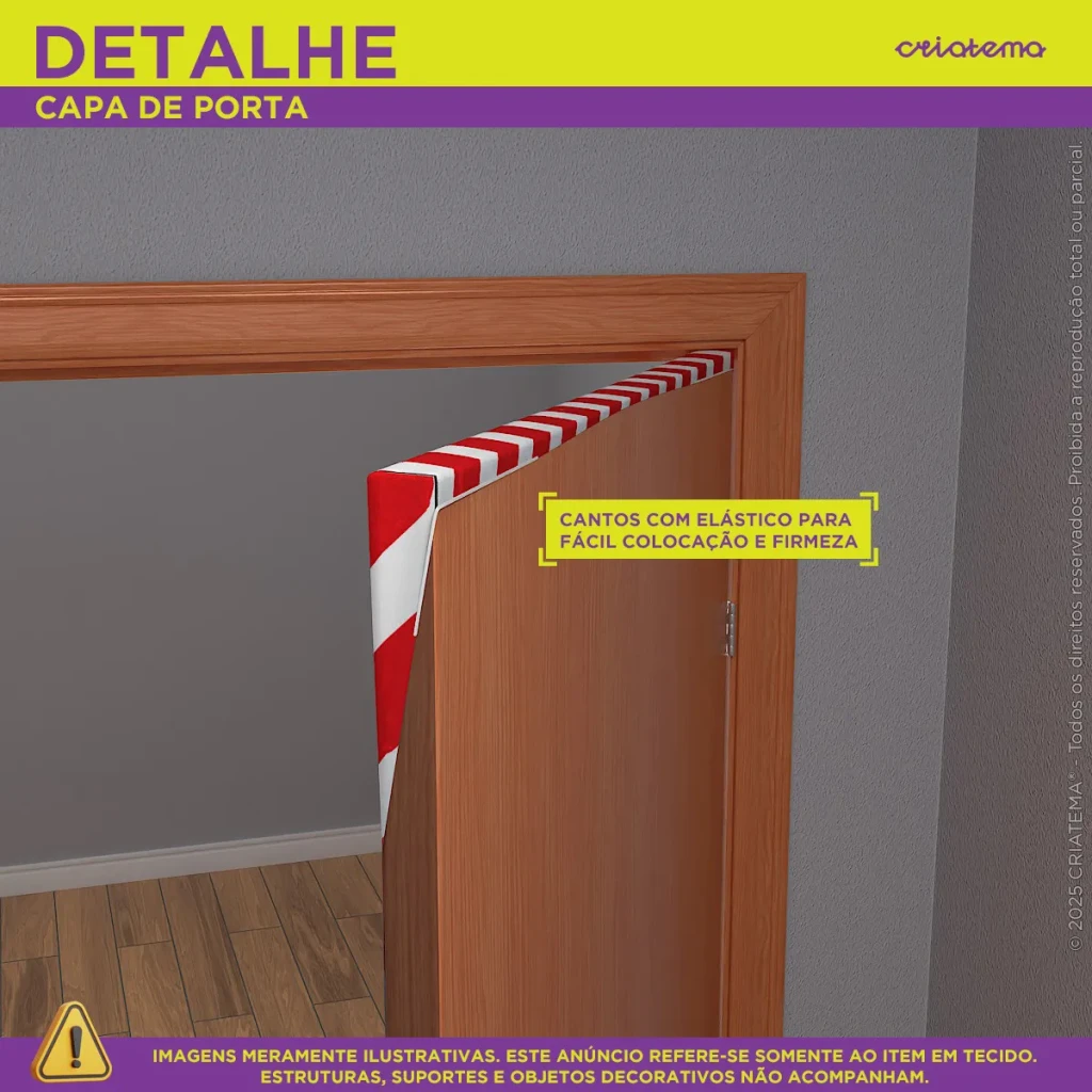 Feita em tecido especial que não amassa e não desbota, essa capa é perfeita para enfeitar sua porta de forma prática e duradoura. Prepare-se para receber seus convidados com estilo!