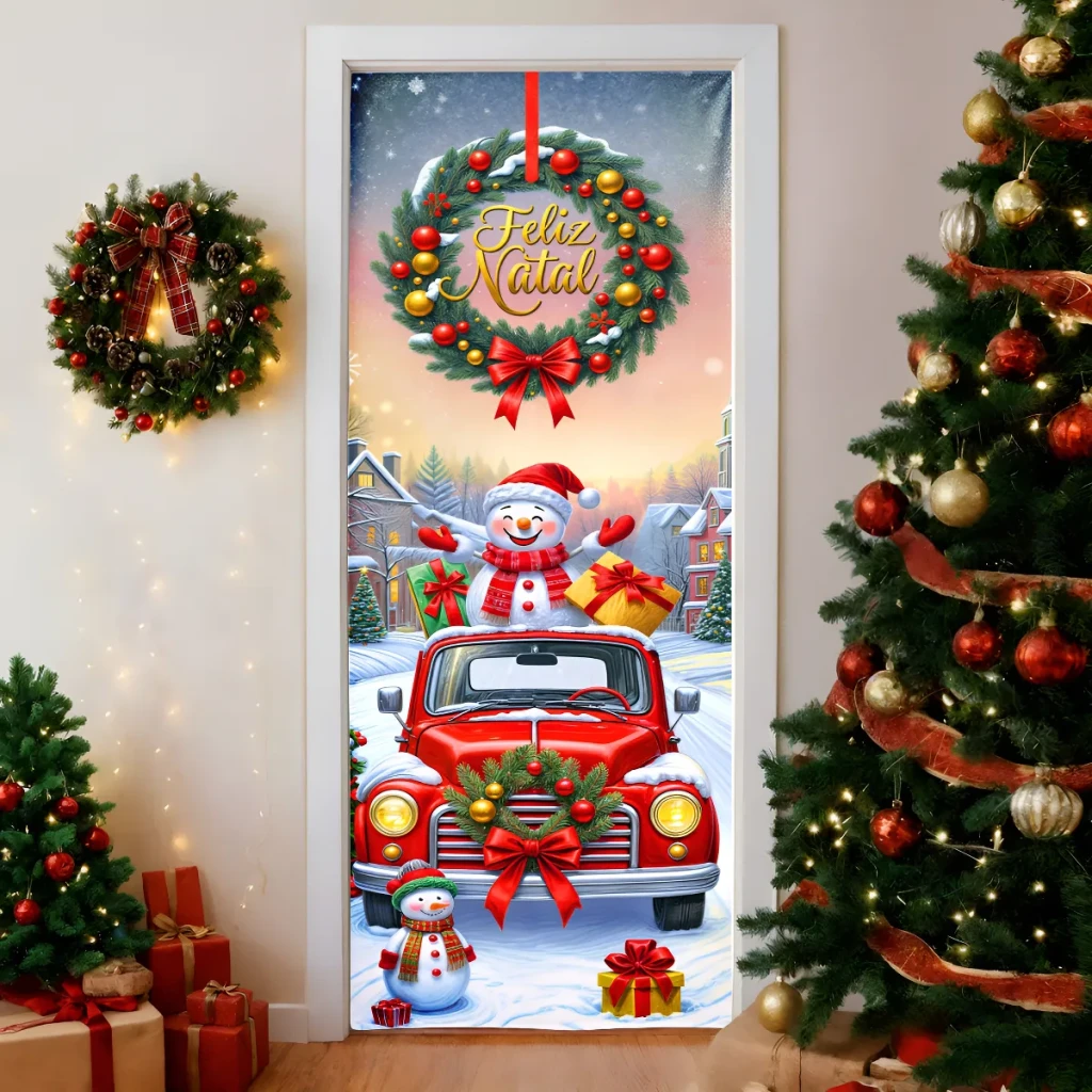 Dê boas-vindas ao espírito natalino com a nossa Capa de Porta Natalina! Este painel decorativo em tecido é prático e fácil de usar, perfeito para criar um ambiente aconchegante durante as festividades.