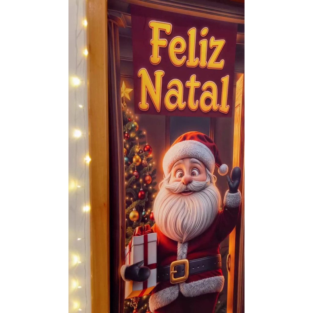 Este painel decorativo em tecido é a escolha perfeita para dar um toque festivo à sua casa durante as celebrações de Natal. Com um design encantador do Papai Noel, ele é fácil de instalar e promete transformar o ambiente.