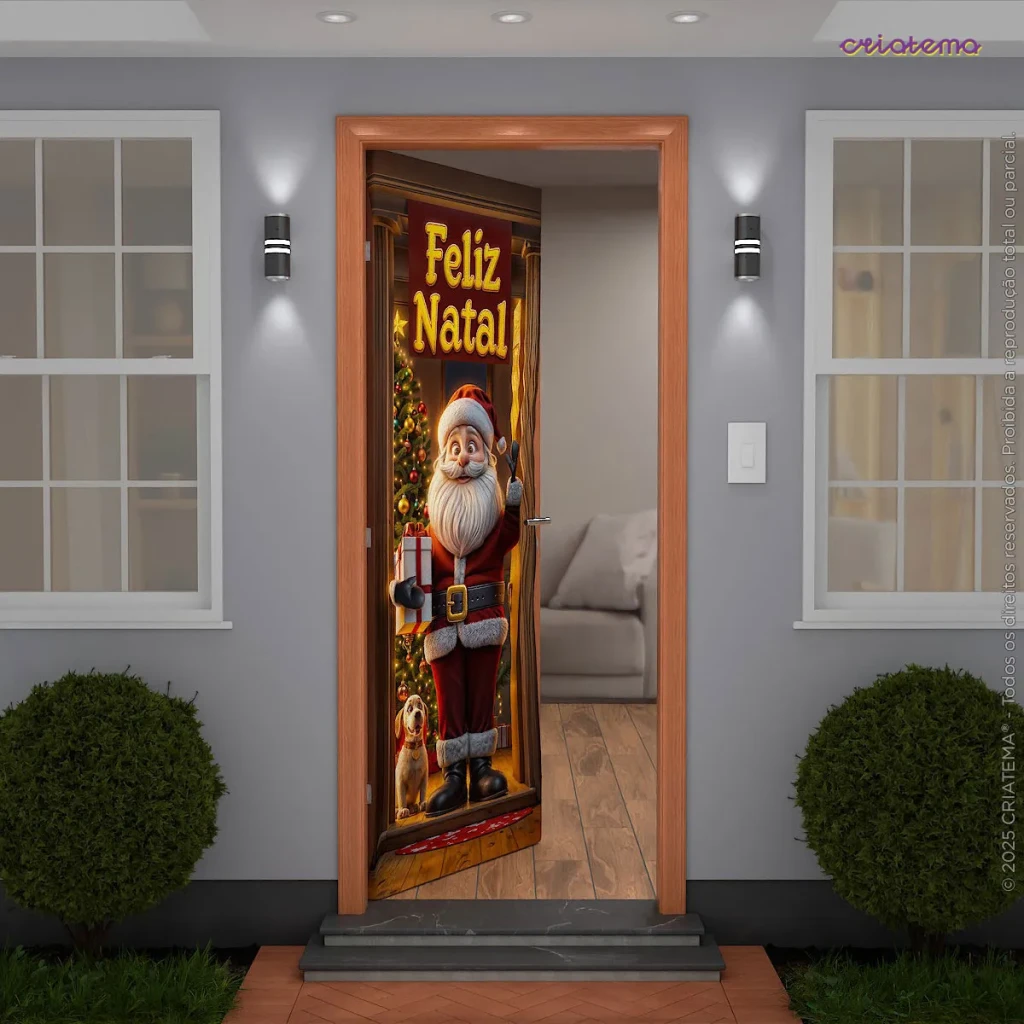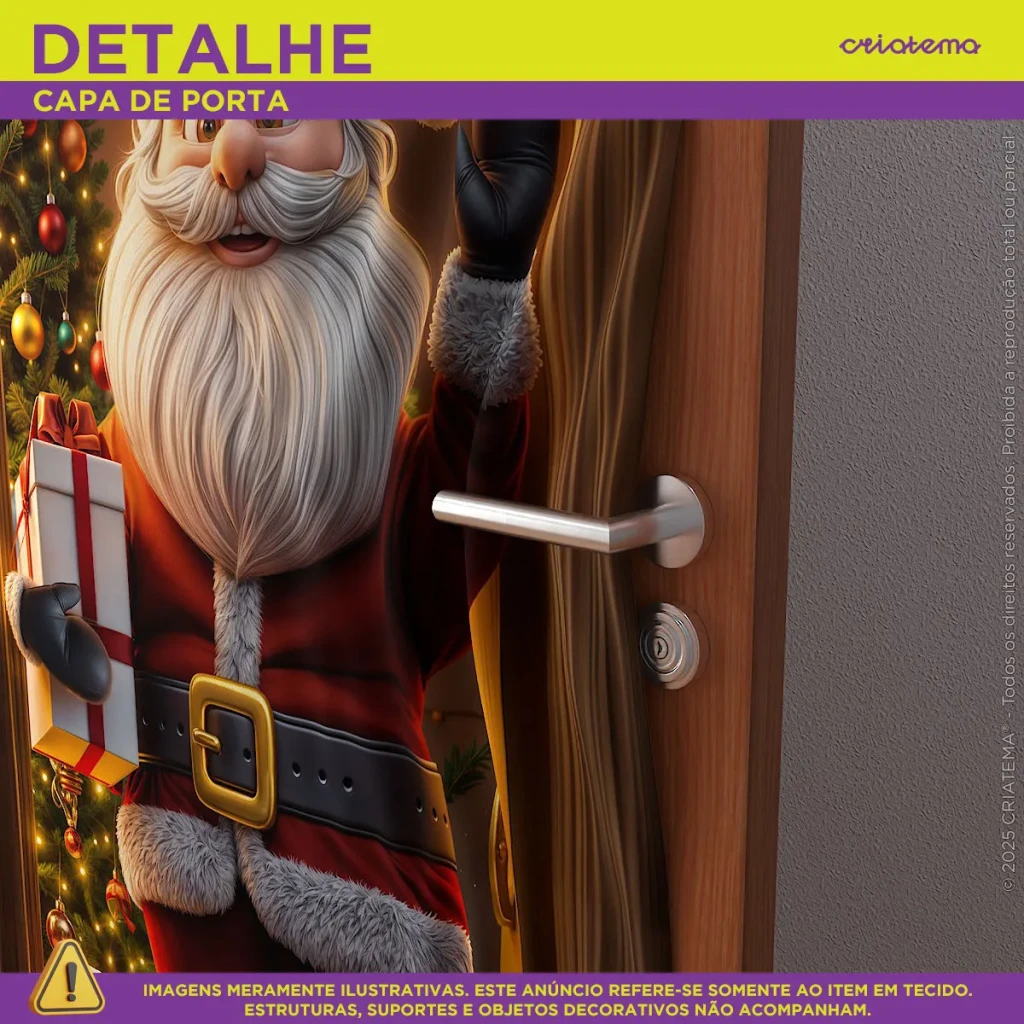 Capa de Porta Natalina Papai Noel – Painel Decorativo em Tecido 0,85×2,10m