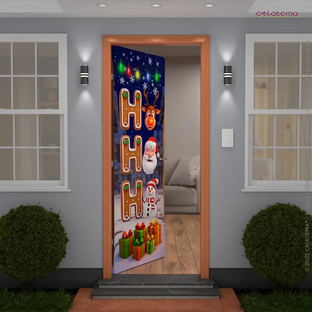 Transforme a entrada da sua casa com a Capa de Porta Natalina Sublimada, ideal para dar um toque especial às suas comemorações.