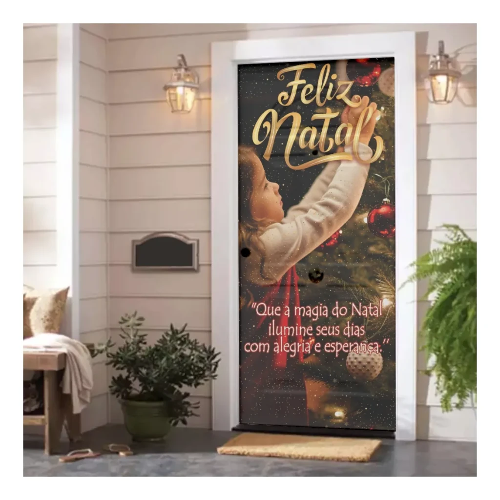 Transforme sua decoração de Natal com nossa Capa Decorativa para Porta Sublimada! Fácil de usar, ela traz um toque especial ao seu lar durante as festividades.