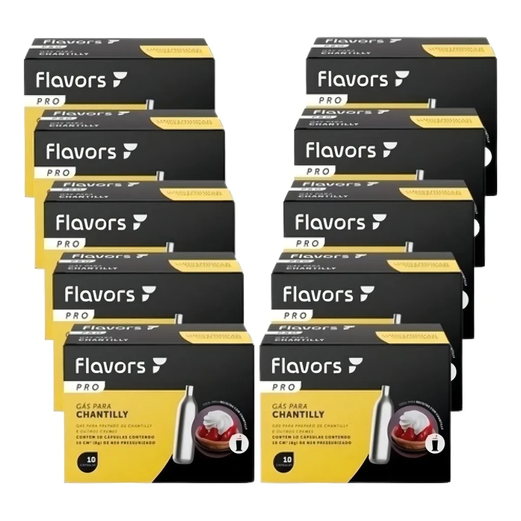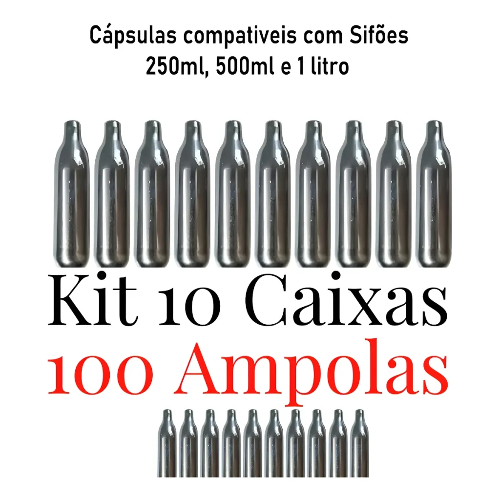 Descubra a praticidade do nosso Kit com 100 cápsulas de gás para chantilly, ideal para uso em garrafas de sifão.