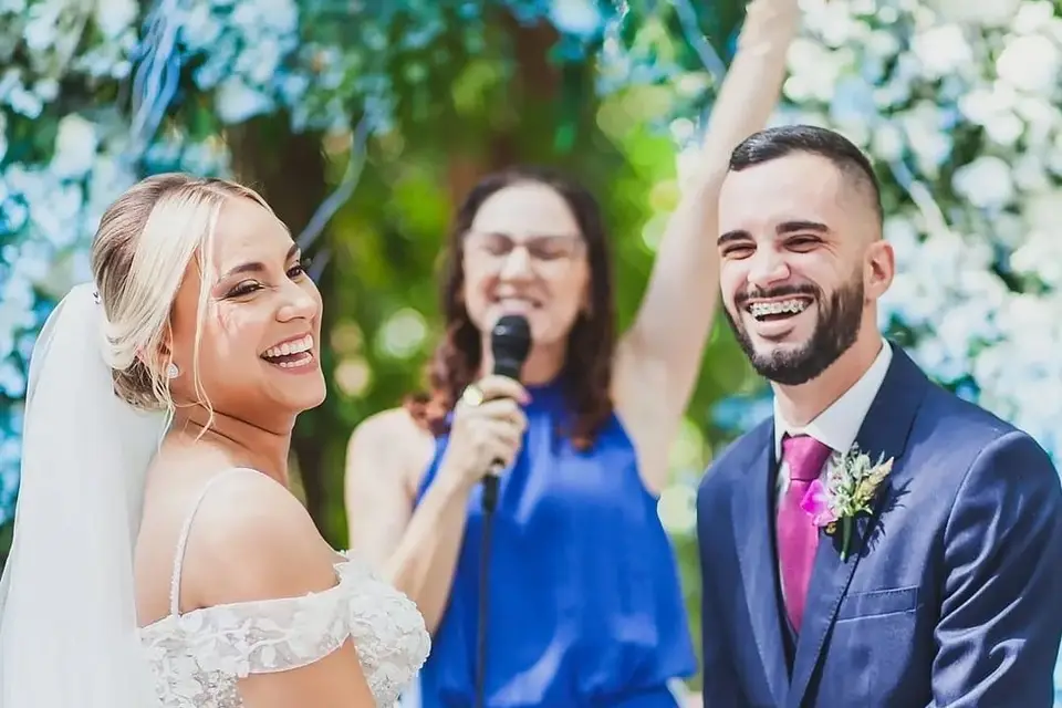 Juliana Galassi oferece um serviço de celebrante personalizado para diversos tipos de cerimônias, incluindo religiosas, civis, simbólicas, temáticas e ecológicas, além de cerimônias com rituais e ecumênicas. Atende eventos com diferentes números de convidados, desde pequenas reuniões até grandes celebrações com mais de 500 pessoas. Seu trabalho é marcado por uma abordagem leve e emocionante, com toques de bom humor, garantindo uma experiência única e memorável para todos os presentes. O serviço tem início a partir de R$4.500, com condições de pagamento a serem combinadas.