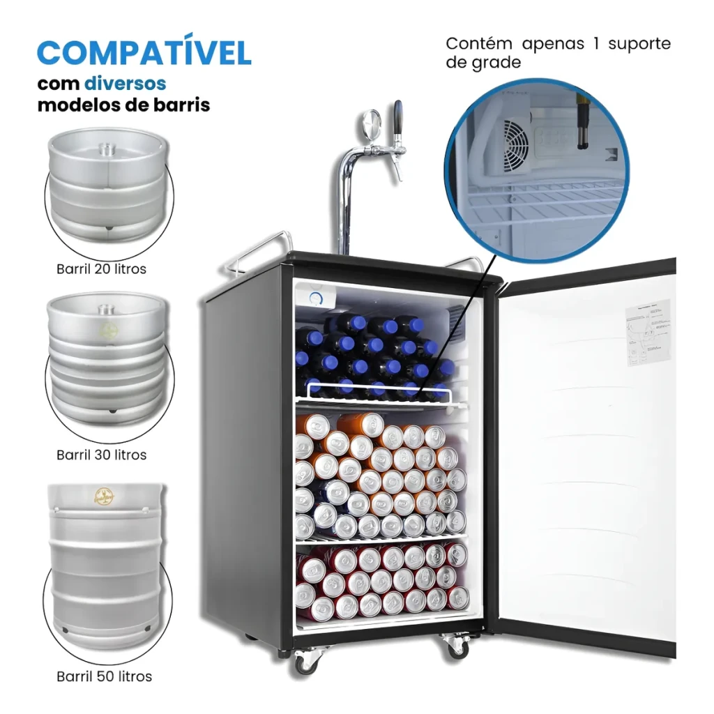 - Capacidade Interna: Armazena até dois barris slim de 20L ou um de 50L.