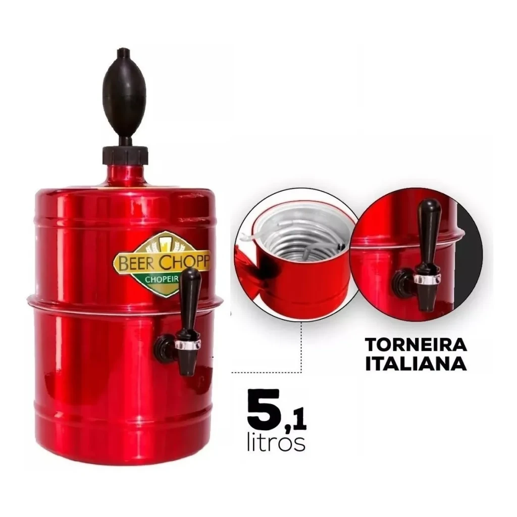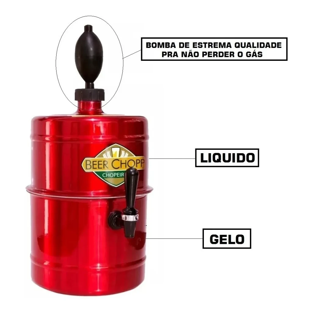 Desfrute de bebidas sempre geladas com a Chopeira Portátil de 5 litros. Sua cor vermelha vibrante traz estilo para qualquer reunião.