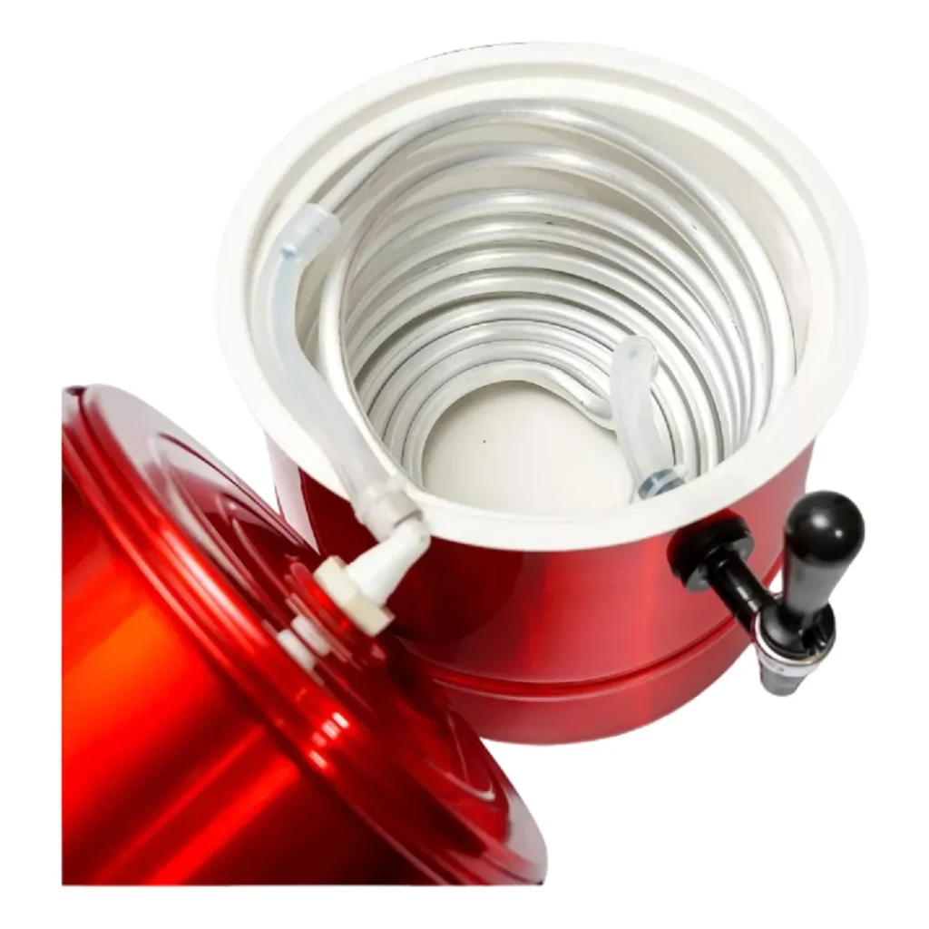 A Chopeira Portátil a Gelo de 5 litros é a solução ideal para manter suas bebidas na temperatura perfeita. Com um design atraente na cor vermelha, ela é feita em alumínio de alto brilho e conta com pintura interna segura para alimentos.