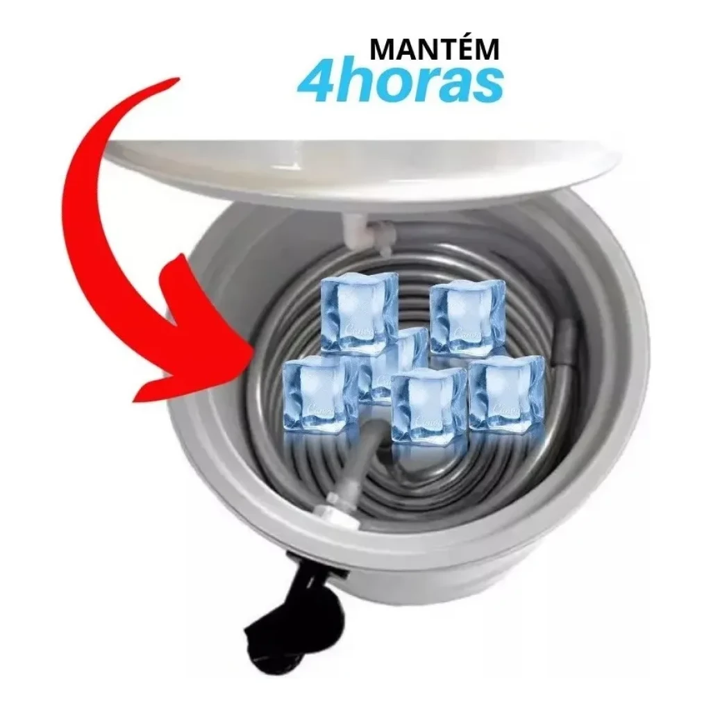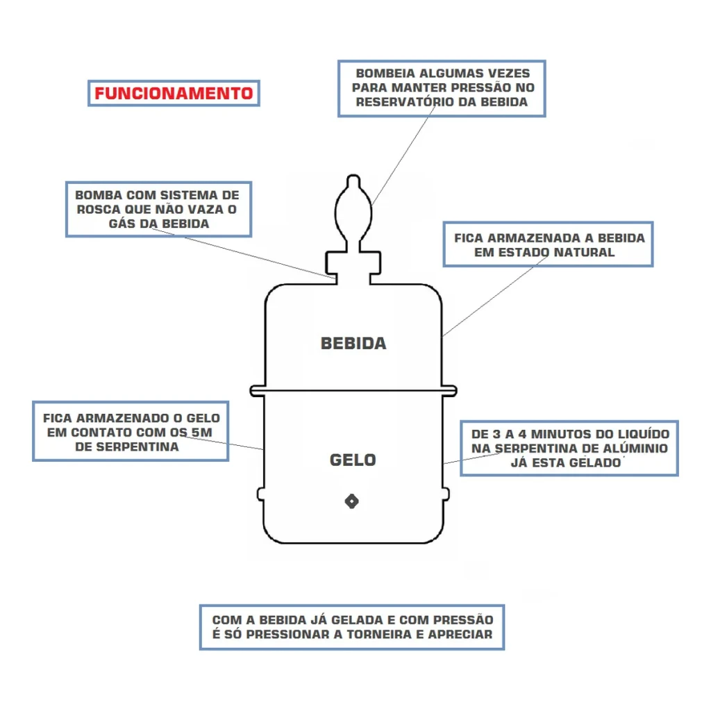 - Sistema de refrigeração eficiente com gelo, mantendo a bebida a 5ºC em poucos minutos.