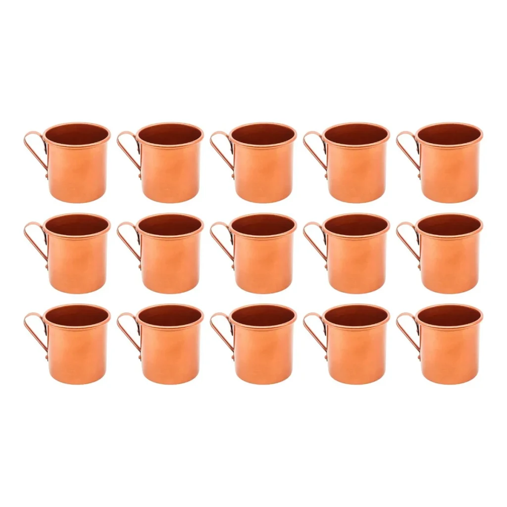 Apresentamos o conjunto de 15 Canecas Moscow Mule feitas de alumínio, com capacidade de 350ml. Seu design elegante e moderno na cor cobre proporciona um toque especial a qualquer ocasião.