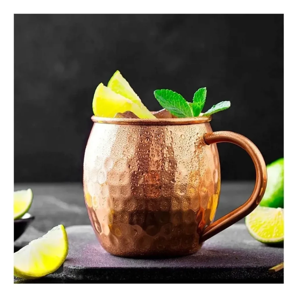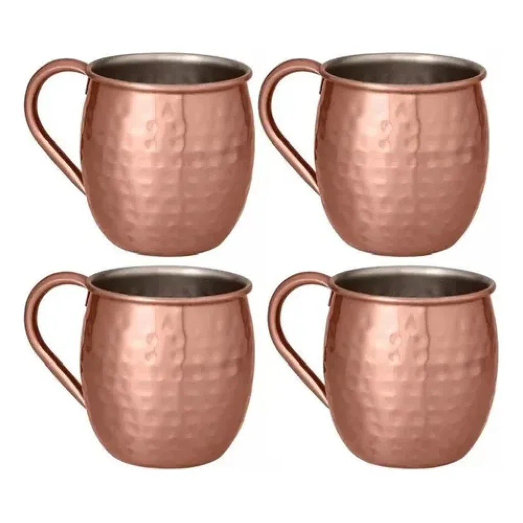 Desfrute do seu drink favorito com o conjunto de 4 canecas Moscow Mule, cada uma com capacidade de 500ml. Feitas em aço inox com banho cobreado, estas canecas garantem durabilidade e estilo.