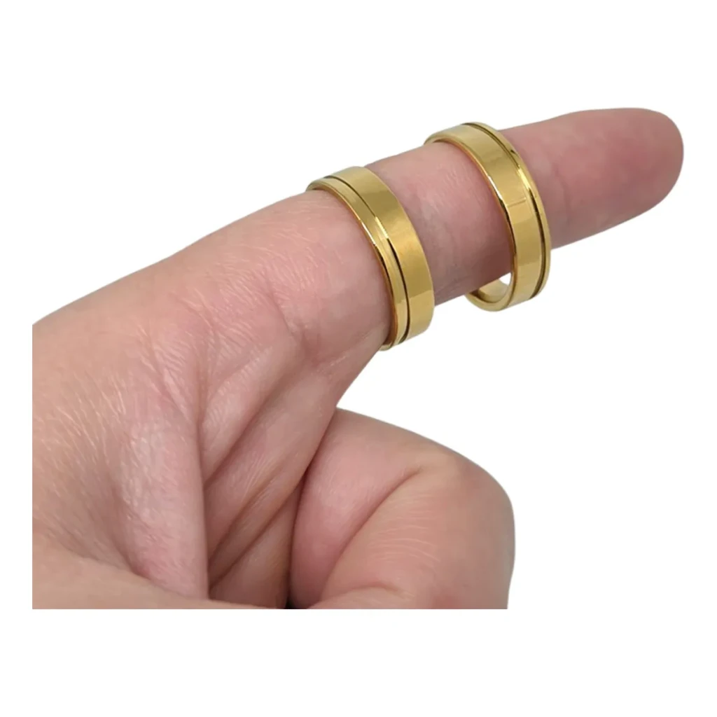 Feitas de aço inoxidável banhado a ouro 18k, essas alianças são delicadas, confortáveis e ideais para noivado ou presentes especiais.