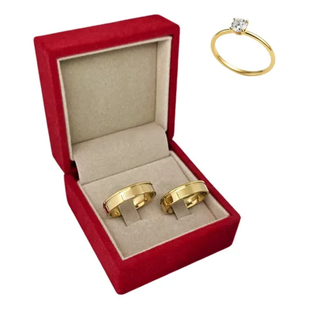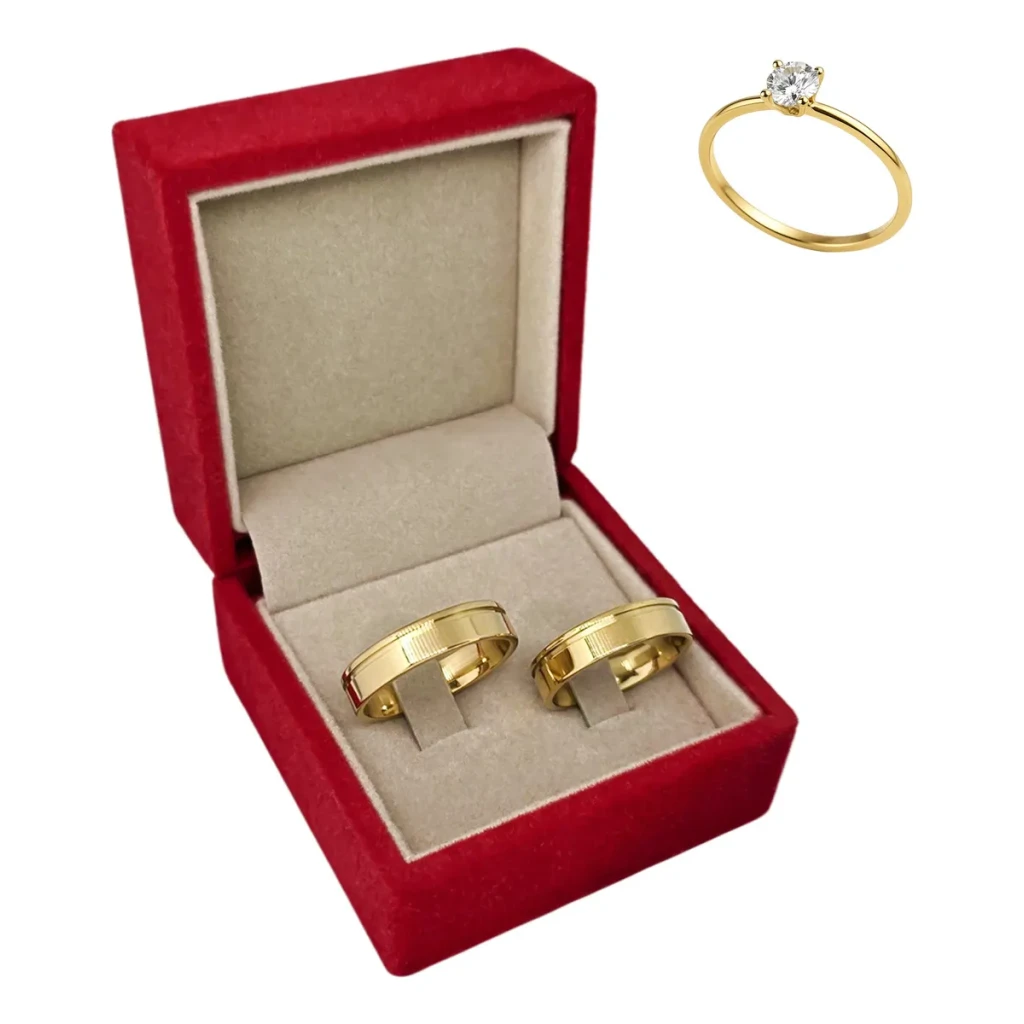 - Par de alianças + 1 anel solitário