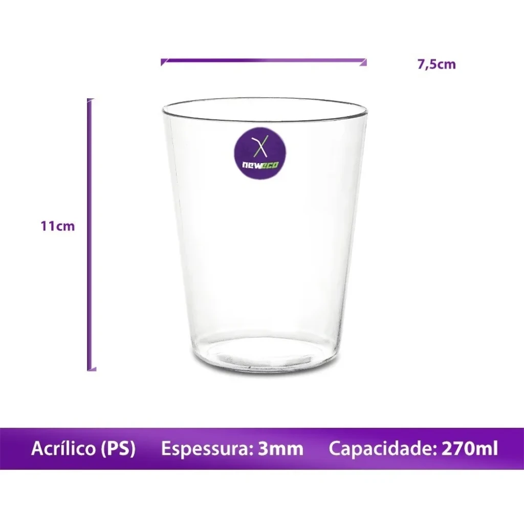 O Copo Acrílico Cristal de 270ml é uma opção prática e elegante para suas comemorações. Com design que remete ao vidro, ele mantém a classe sem comprometer a funcionalidade.