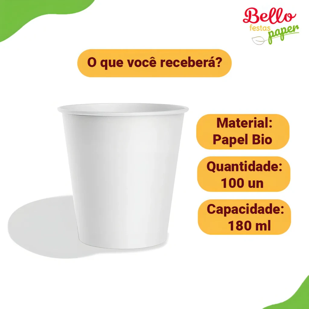 Copo de Papel Branco Biodegradável 180ml – Bello Festas