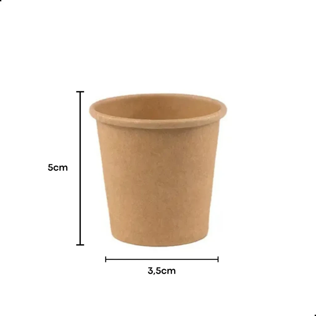 - Material: Papel kraft biodegradável, resistente para bebidas quentes.