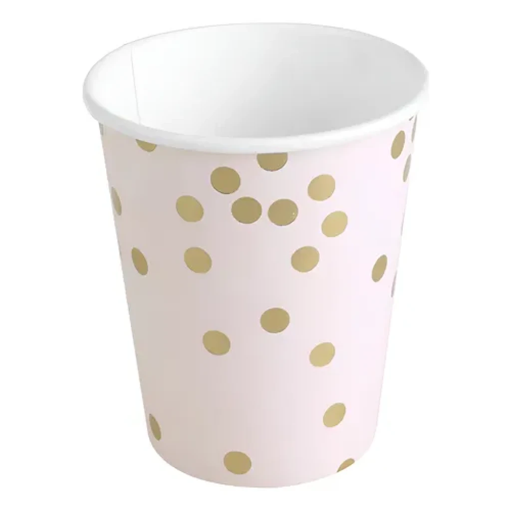 Copo Decorado de Papel com Confetes Dourados Rosa Bebê – 10 Unidades