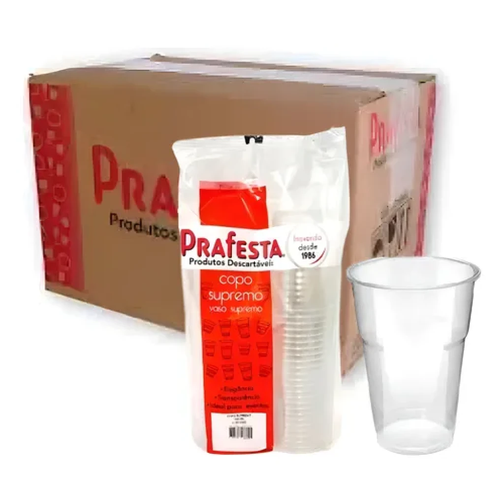 Caixa com 1.000 unidades do Copo Descartável Supremo, perfeito para diversas ocasiões. Com design transparente, ele é ideal para: