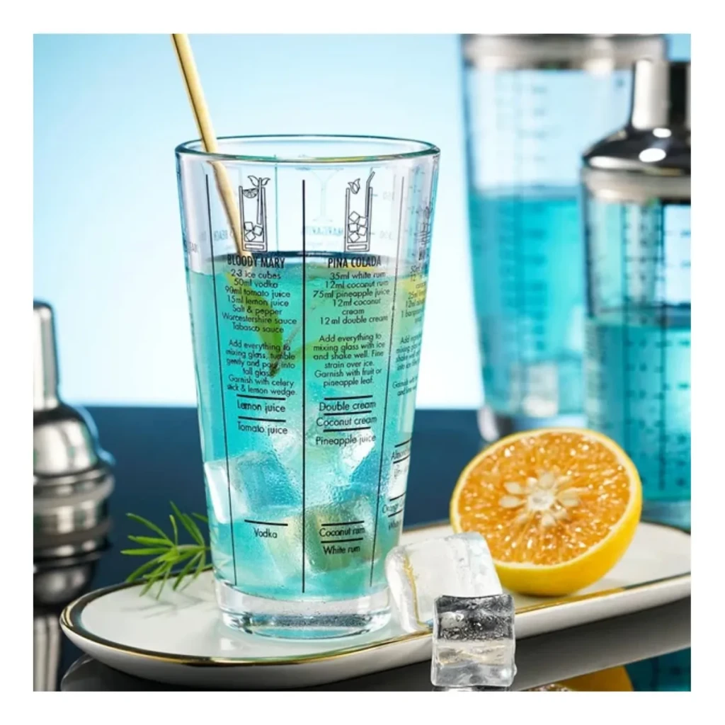 Ideal para preparar bebidas clássicas, vem com marcações em ml e oz. Surpreenda seus convidados com receitas gravadas no corpo da coqueteleira.
