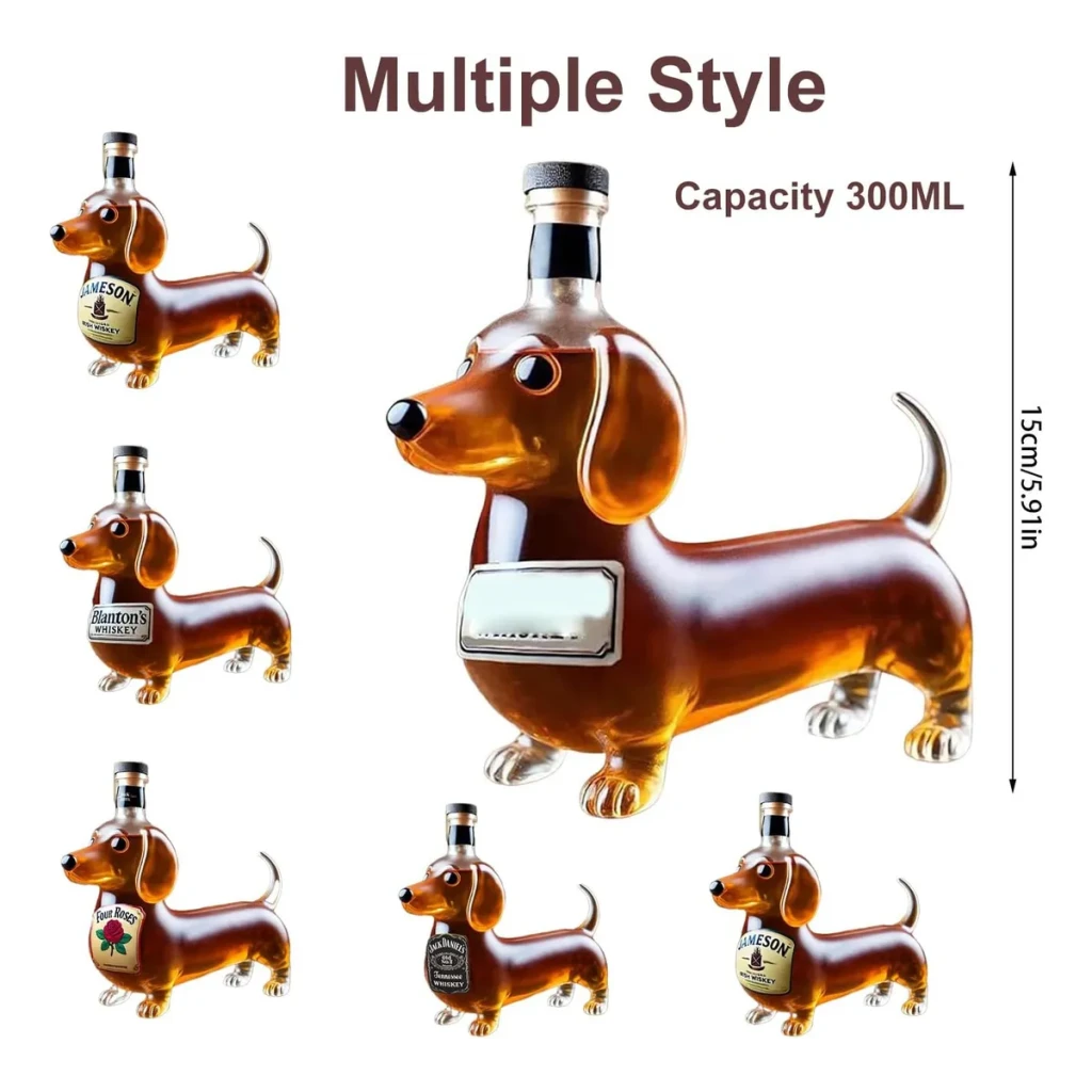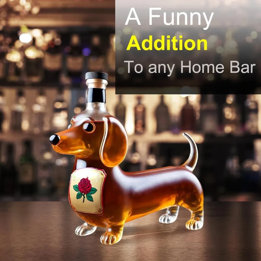 Transforme seu bar com o exclusivo Decantador de Uísque Dachshund. Perfeito para amantes de cães, ele combina funcionalidade e decoração de forma única.