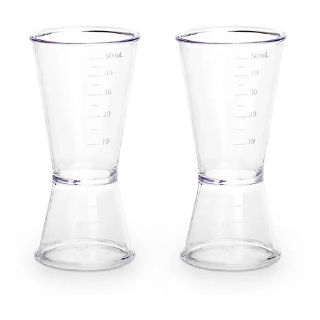 Conteúdo do pacote: 02 dosadores de bebidas acrílico cristal com medidor duplo.