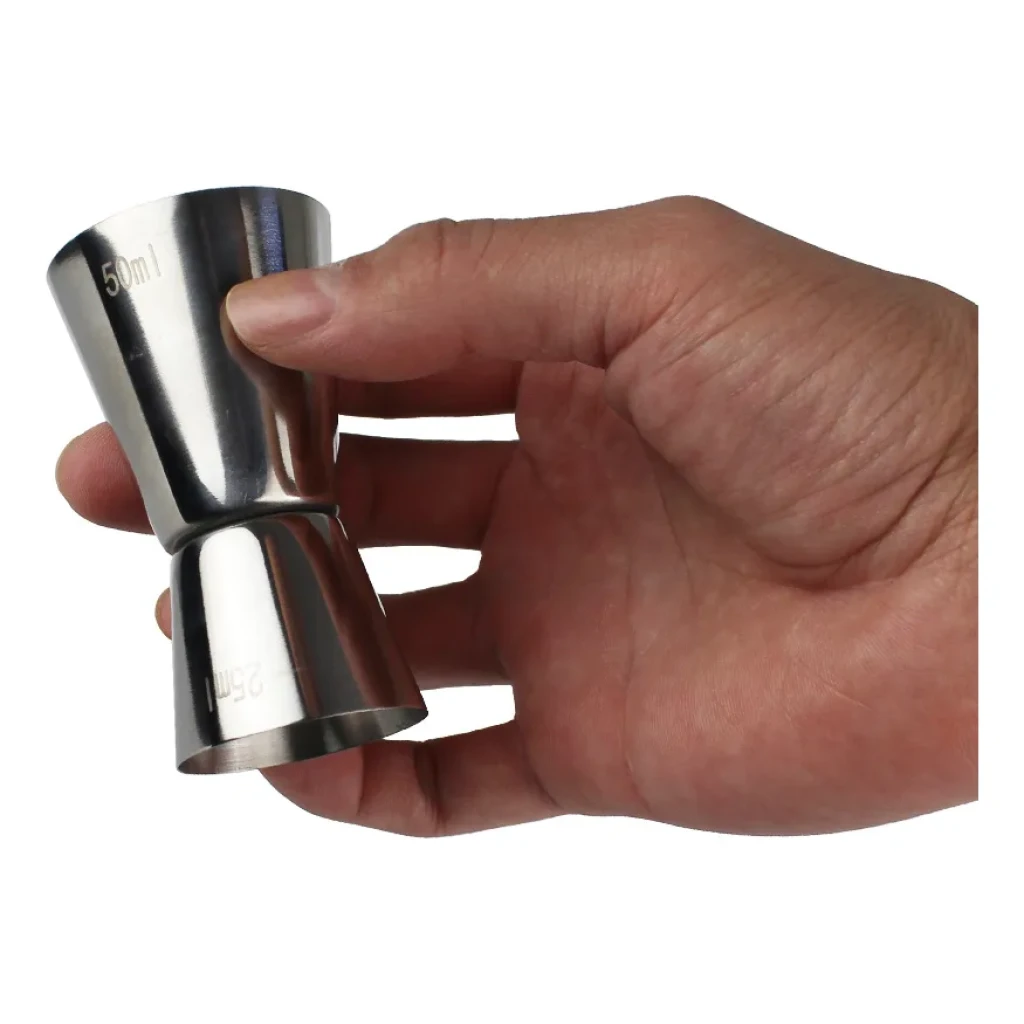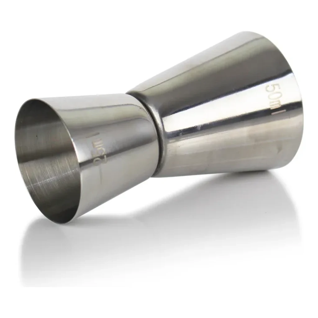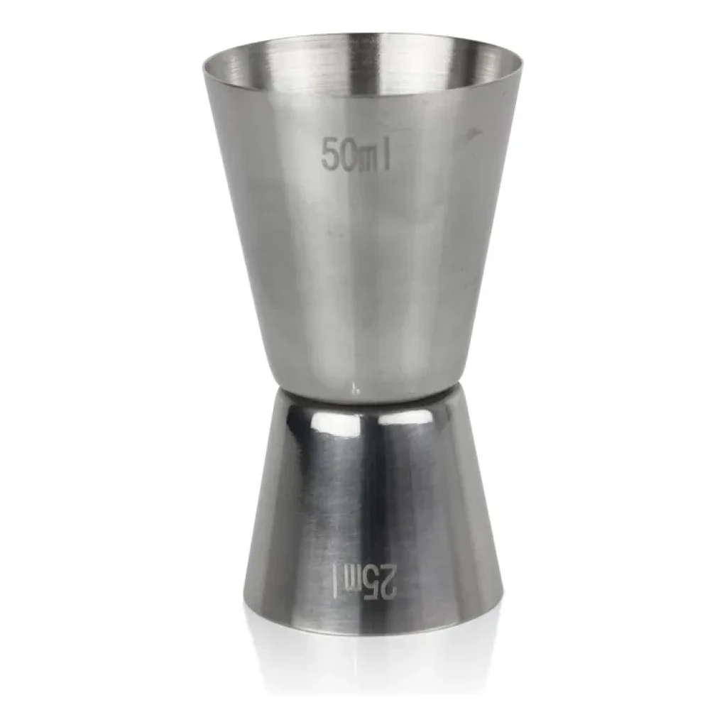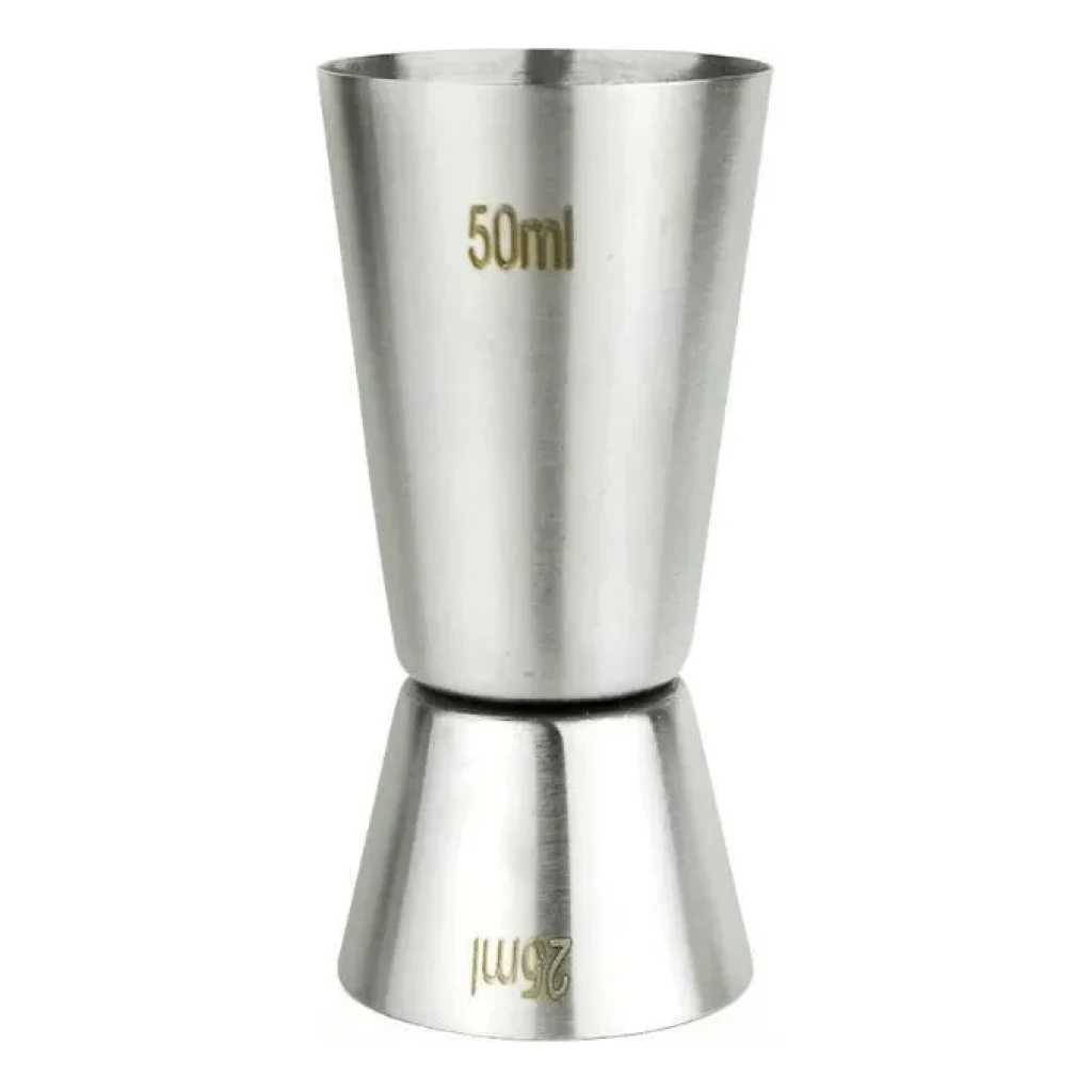 O Dosador Duplo de Inox 50/25ml Unyhome é ideal para medir líquidos com precisão, apresentando capacidade de 25ml e 50ml.