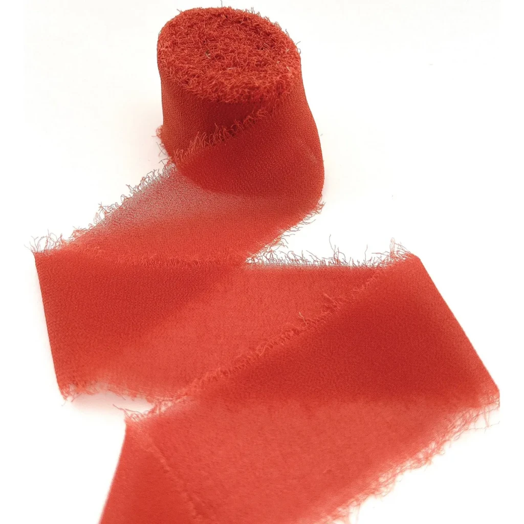 Transforme seus convites e lembranças de casamento com nossa fita chiffon de seda rústica e desfiada. Disponível em várias cores, ela é perfeita para dar um toque especial às suas criações.