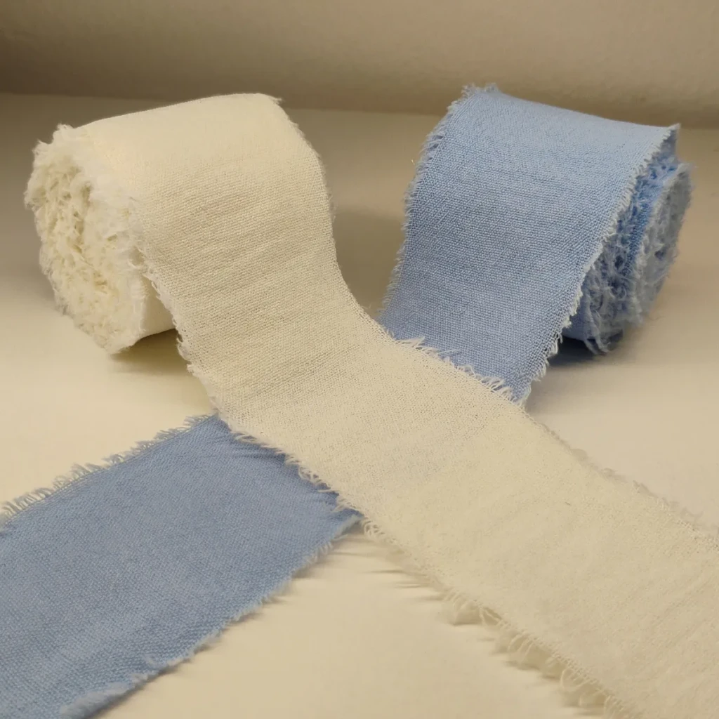 Trabalhamos com tecidos rústicos e crepes franceses, importados diretamente de Lyon, garantindo qualidade e durabilidade. Nossas fitas são leves e fluidas, perfeitas para projetos sofisticados.
